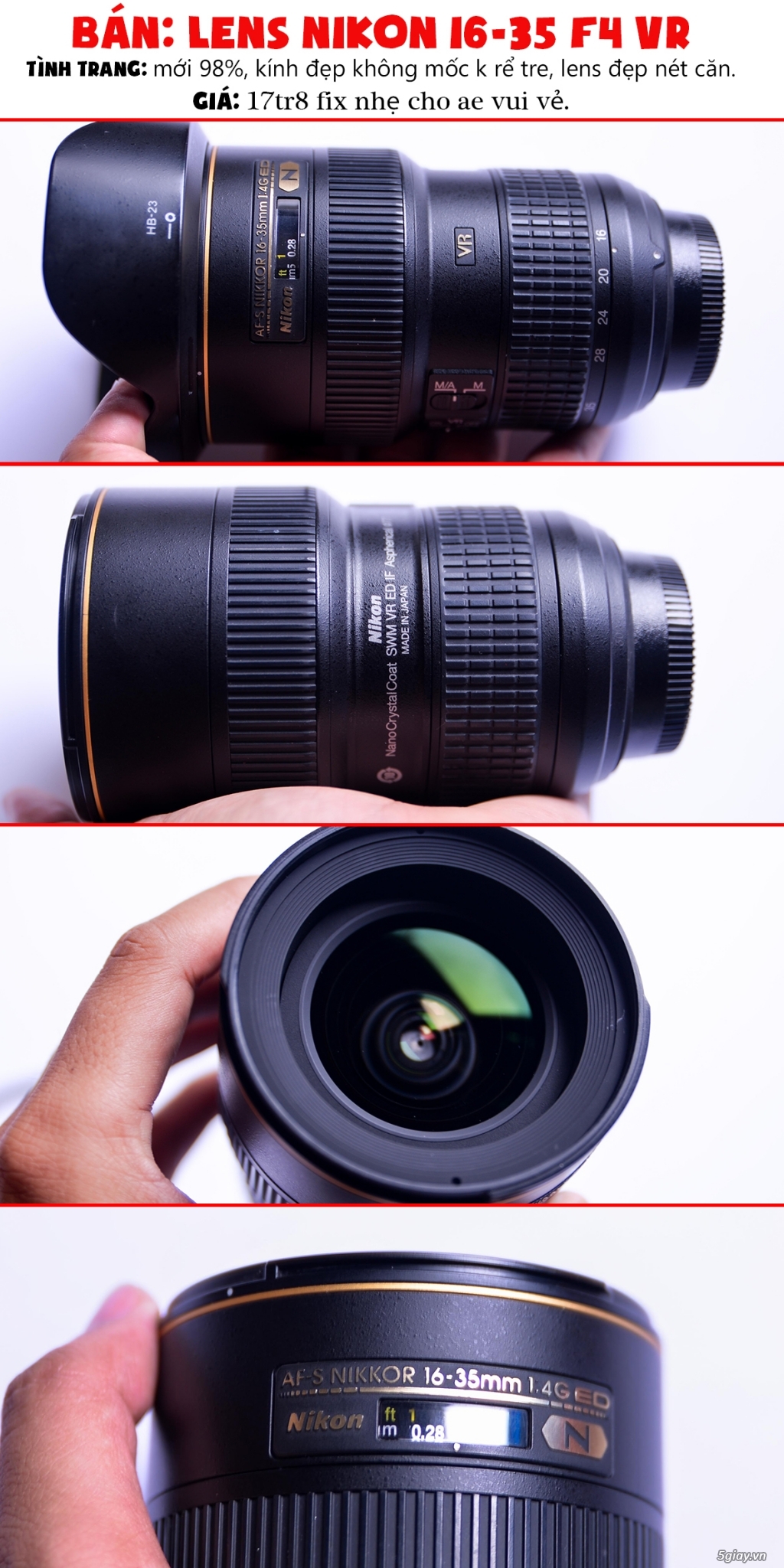 Tình Trạng: lens đẹp 98% , kính đẹp , k mốc k rể , lấy nét êm nhanh , chống rung tốt , không lỗi lầm.