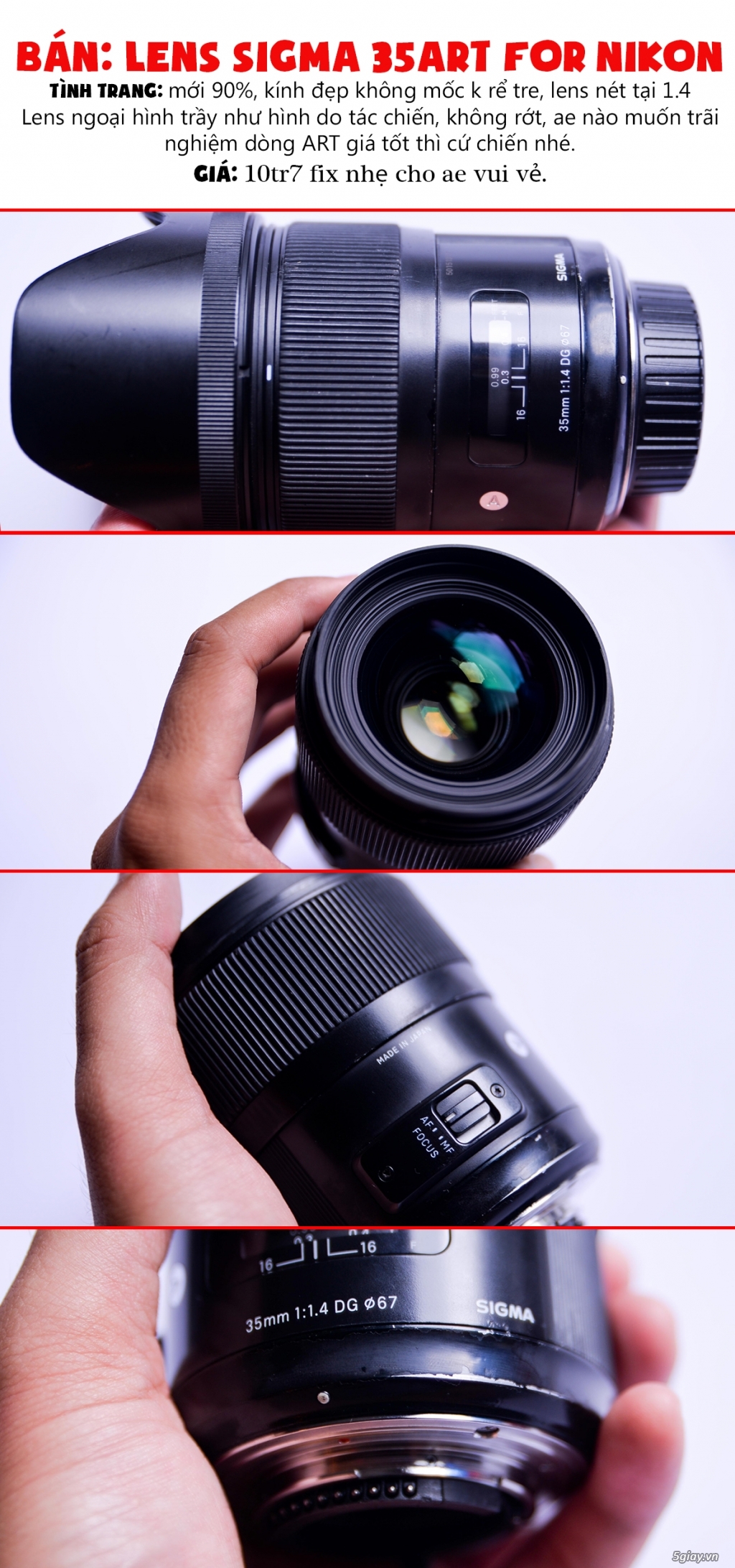 Tình Trạng: Lens vỏ hơi trày nhưng kính đẹp và không mốc k rễ , nét tại 1.4. AE muốn tiết kiệm không qan tâm ngoại hình thì e nó là số 1. Dán decan carbon là bao đẹp luôn nhé.