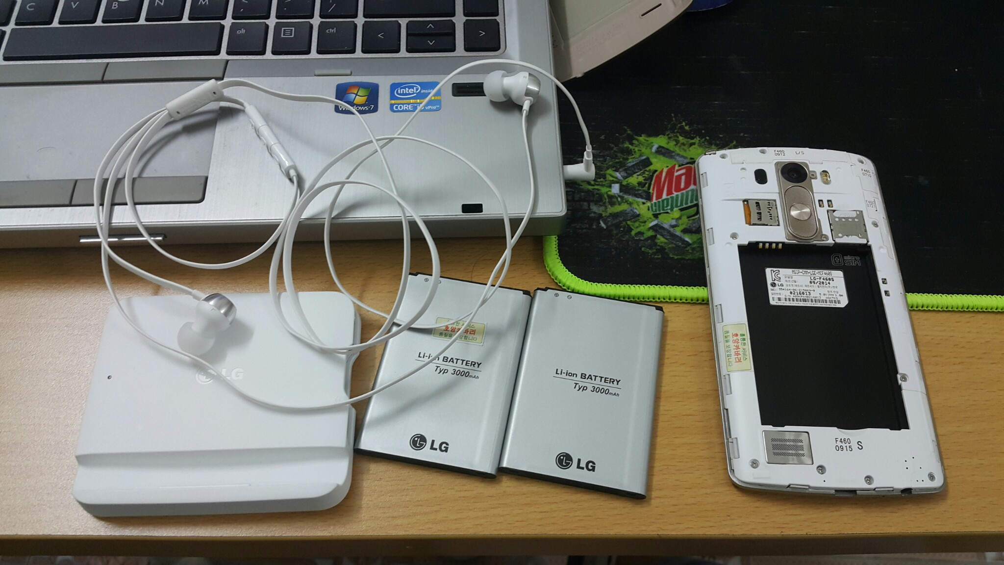 Phụ kiện: box, dock sạc + 1 pin dự phòng, sạc cáp, tai nghe quad beat (chả dùng mấy).