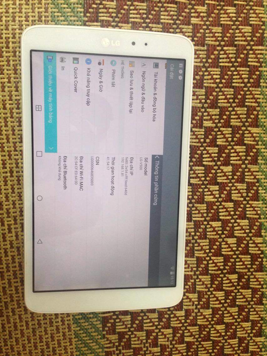 em có dư em máy tính bảng LG v500, hàng chính hãng, còn hộp. hình thức như mới, các chức năng dùng bình thường. phụ kiện còn mỗi củ sạc. giá 3tr3 0989719951 164 vương thừa vũ, hà nội. có fix cho bác nào nhiệt tình