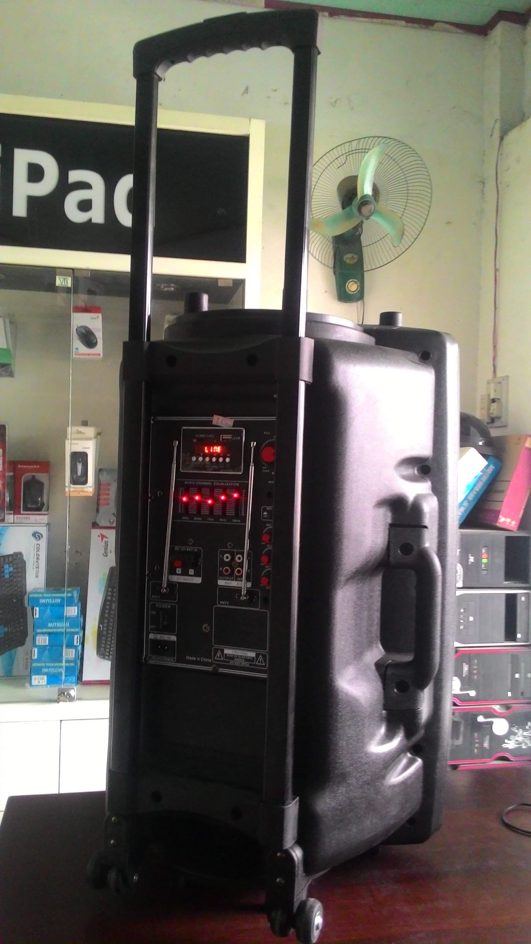 - Đây là dạng loa thùng vali có cần kéo với công dụng đa chức năng như: phát nhạc qua thẻ nhớ, usb, Bluetooth, cáp nối trực tiếp qua DVD, amply, Laptop, điện thoại, nghe FM,