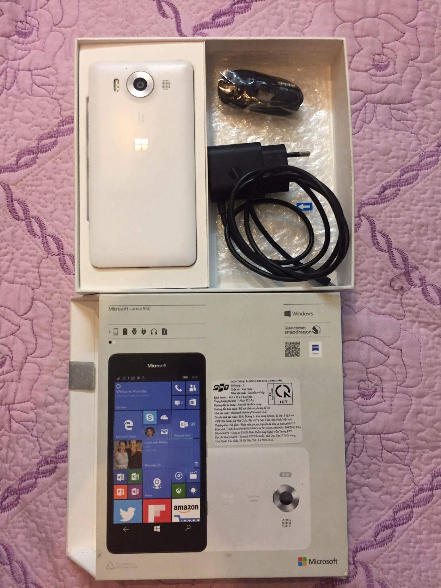 Mình cần bán Lumia 950, hang công ty VN, màu trắng, ngoại hình còn đẹp như hình.