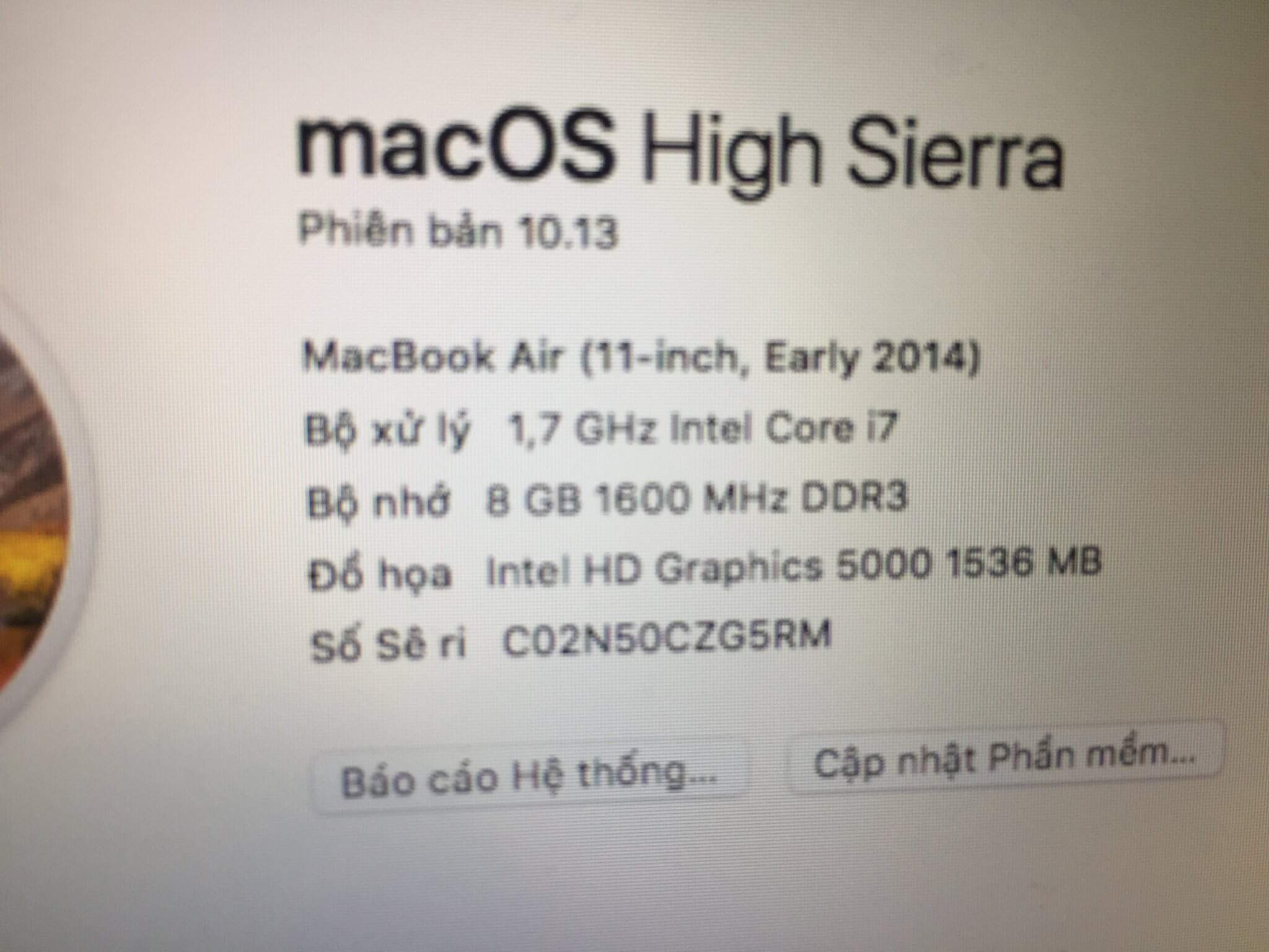 Cần bán em macbook air 11" early 2014 Chip i7 1,7GHz Ram 8gb ssd 256gb Máy pin trâu, đẹp keng luôn ạ Máy khá nhỏ gọn, nhẹ và mỏng Giá 11xxx