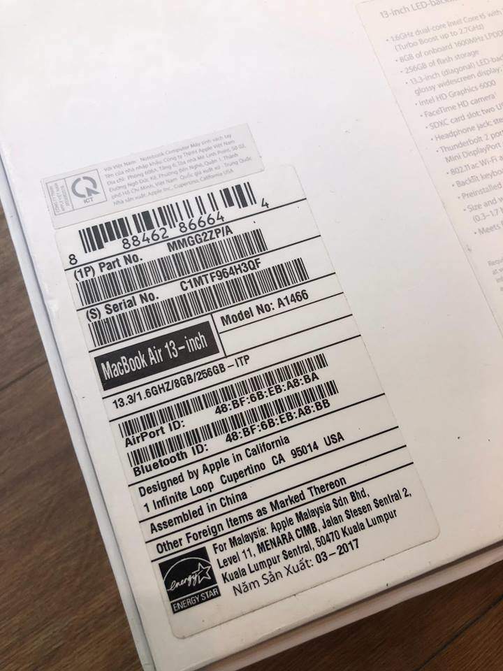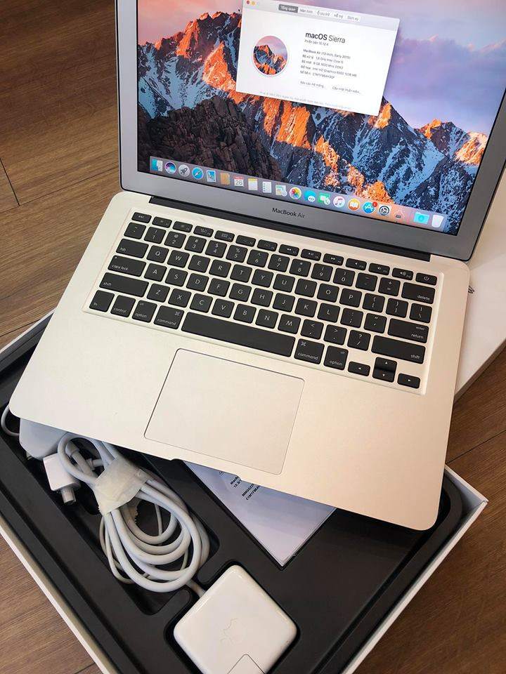 - Macbook Air 13” MMGG2ZP/A, hàng chính hãng FPT, máy mới tinh như vừa bóc từ hộp ra, sạc vỏn vẹn 29 lần, nhìn là muốn mua ngay, full box đầy đủ phụ kiện, còn bảo hành hãng đến T7/2018 tại FPT Services