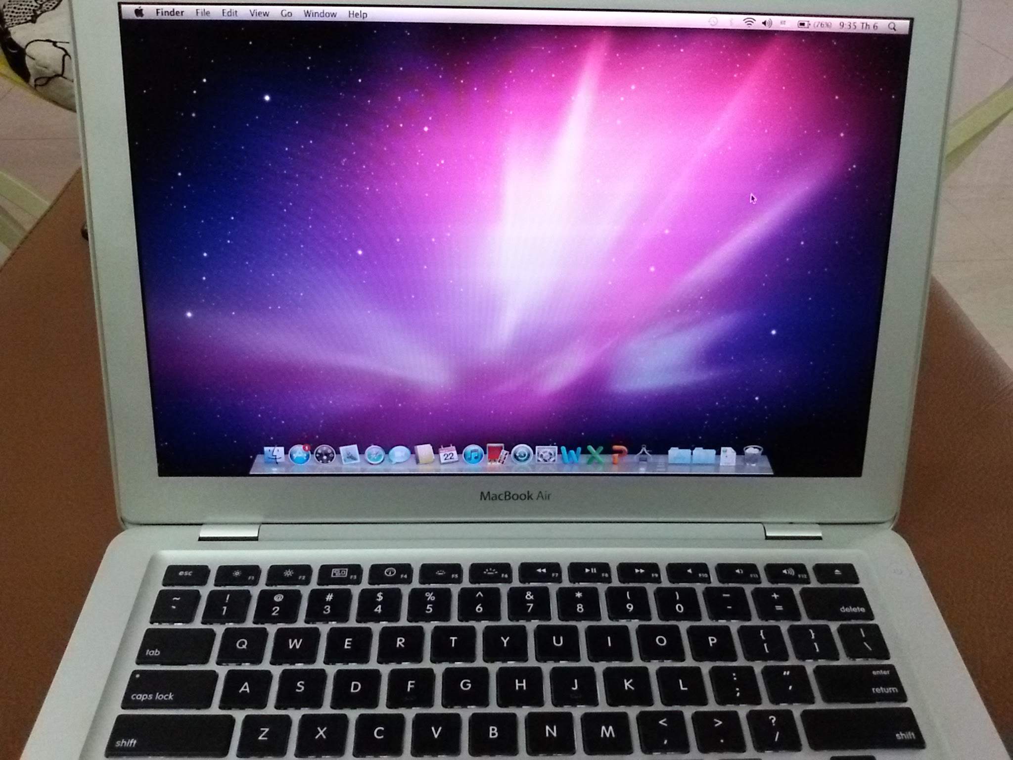 Macbook Air core 2 dou 1.86g màn hình 13.3 inch, Cấu hình em nó như sau: CPU Core 2 dou 1.86g DDR3 2g bus 1067 Hdd APPLE 120g Wifi, Bluetooth, Camera hoạt động hoàn hảo Led 13.3 inch (siêu sáng) Giá: 6.2 tr LH: 0902.242.094