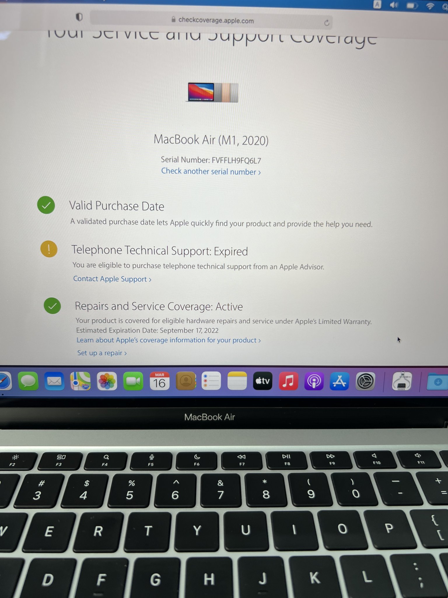 MacBook Air M1 silver ram8/256 Bh 9/2022 apple