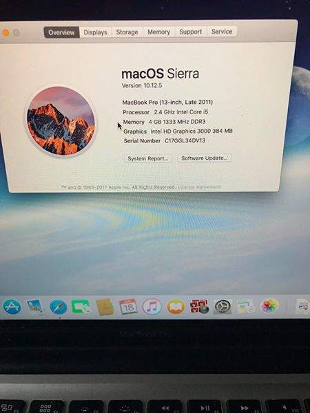 MacBook Pro 13 inch late 2011 i5 4gb 500Gb