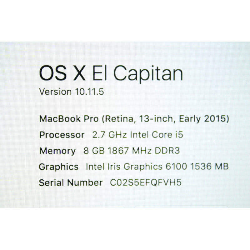 Hiện cần bán Macbook Pro 2015 13" 8GB 256GB, hàng xách tay từ Mỹ, máy mới 99,99% like new, nguyên zin và còn bảo hành 9/2017, no box chỉ có sạc zin theo máy. Cấu hình chi tiết sau: