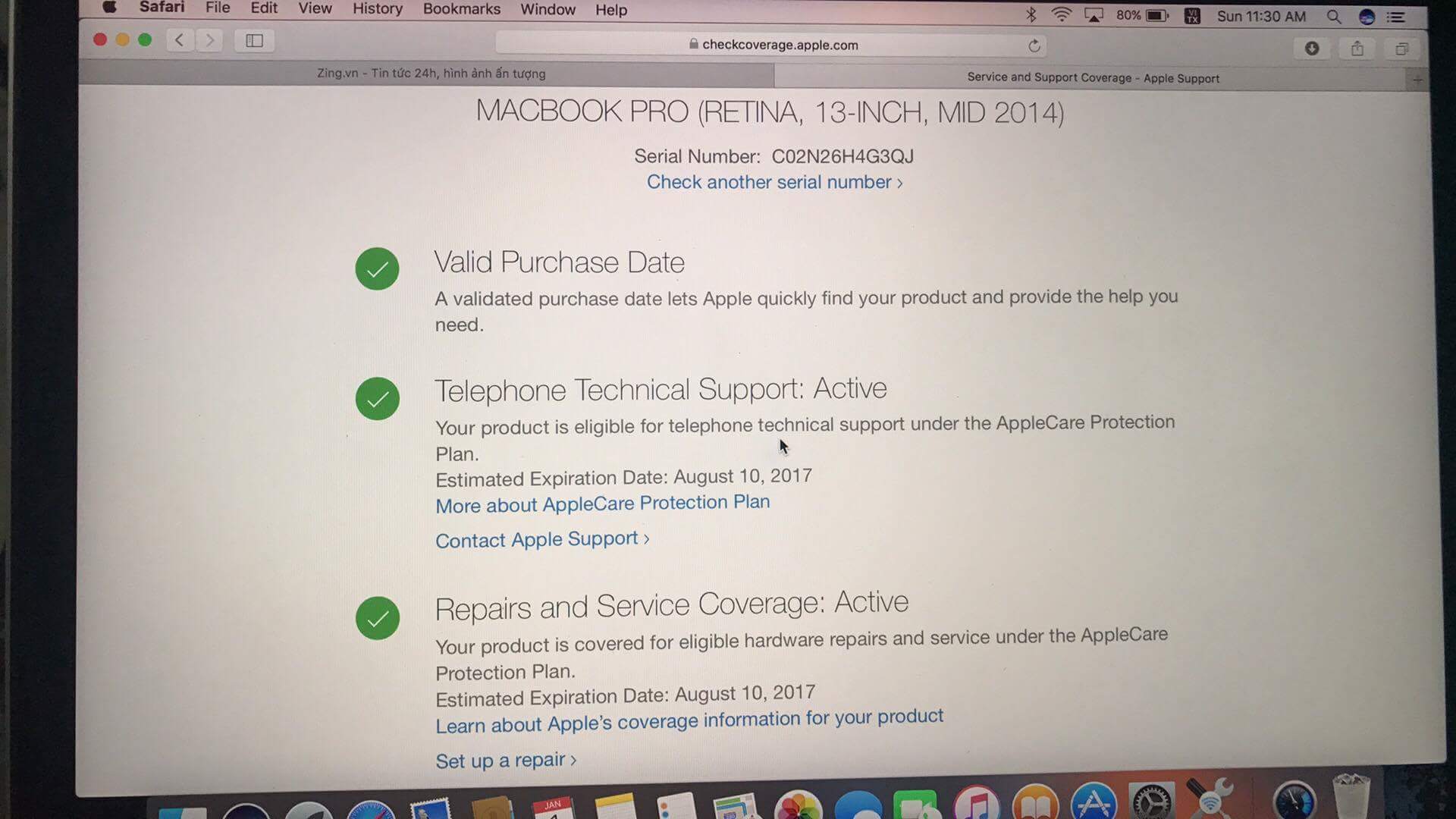 Mình cần bán Macbook pro rentina 13.3 inch mid 2014 đang sử dụng bình thường, còn bảo hành đến 10-8-2017 , sạc 156 lần.