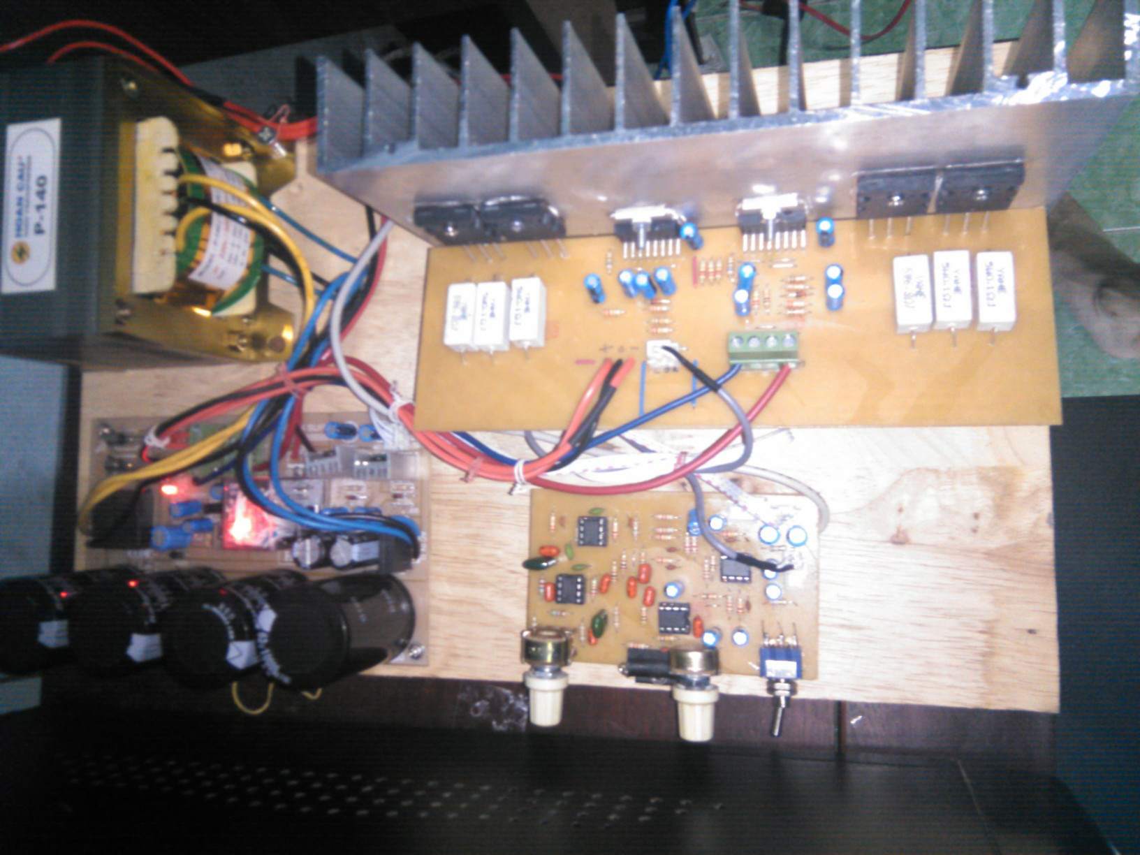 - Mạch công suất sử dung 2 IC TDA7294 ghép cầu đẩy 4 con sò lớn C5200 + A1943