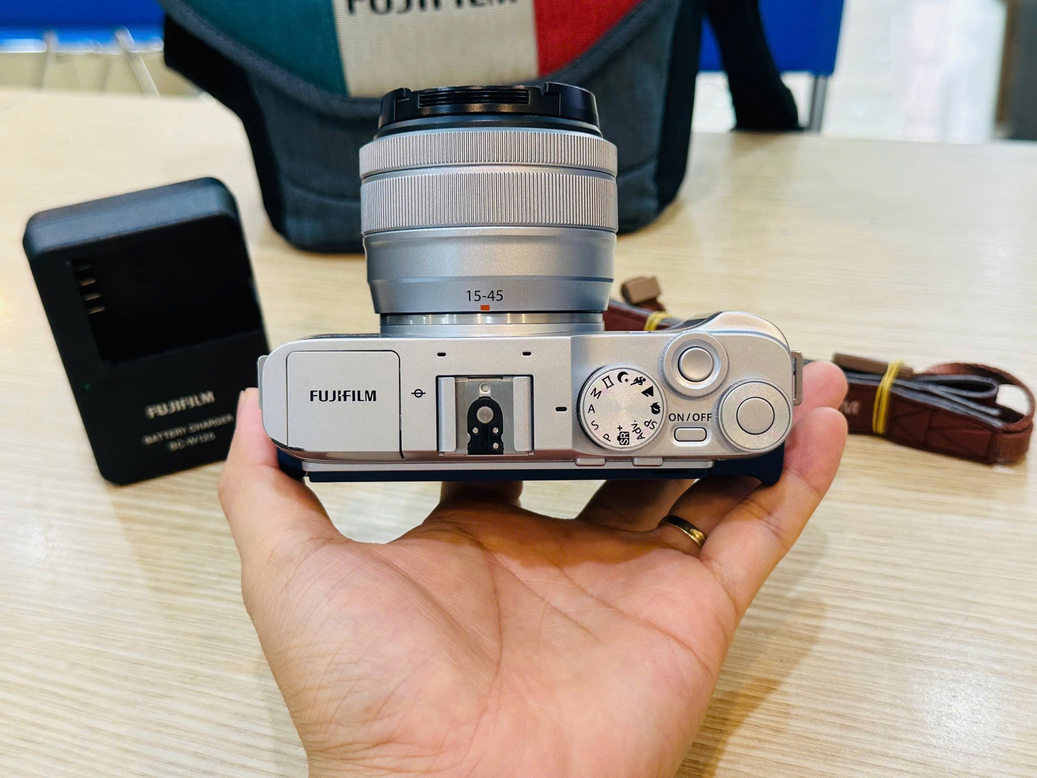 - Đầy đủ phụ kiện: body + pin + sạc + dây đeo