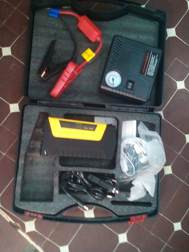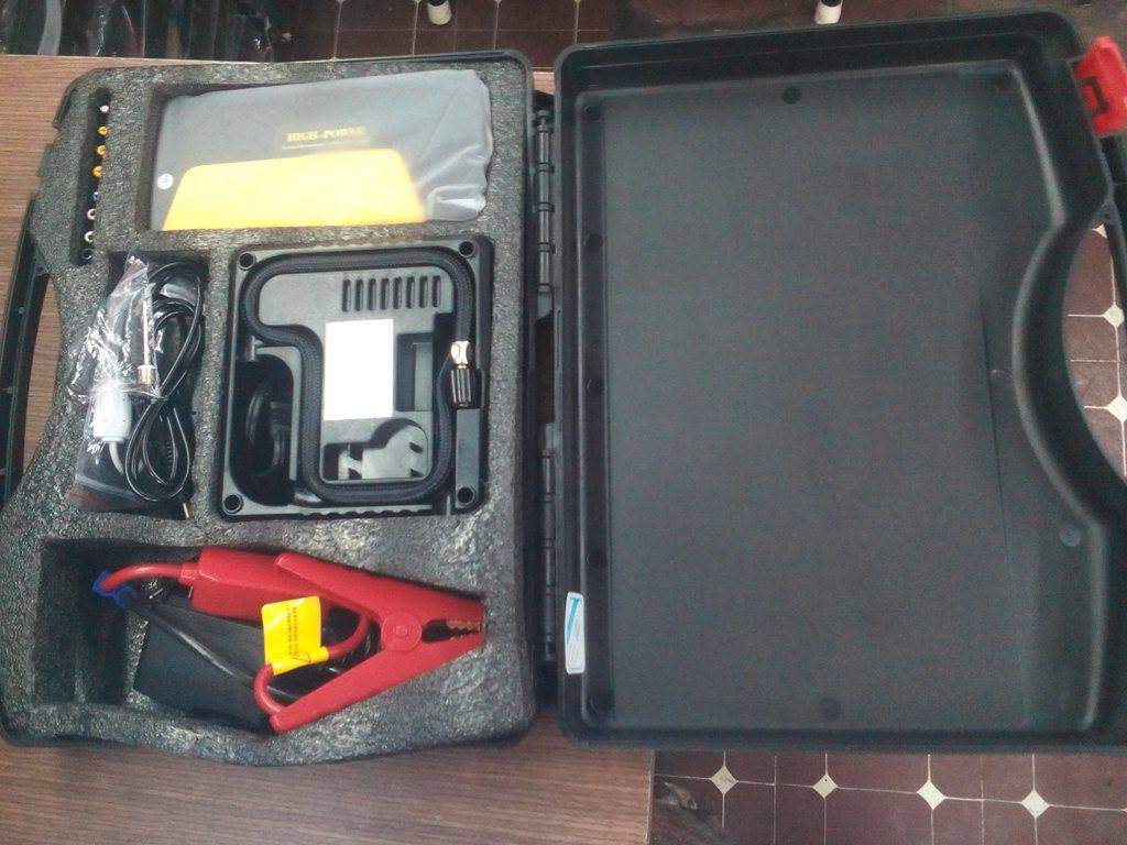 máy bơm vỏ xe kiêm kích bình oto khi ắc quy khi không đề nổ được + sạc điện thoại+sạc laptop, nguồn cung cấp điện sạc 5v,12v,16v,19... có đèn pin+đèn báo cứu hộ, viên pin dự phòng 50800mah ,sản phẩm chất lượng bảo hành 12tháng