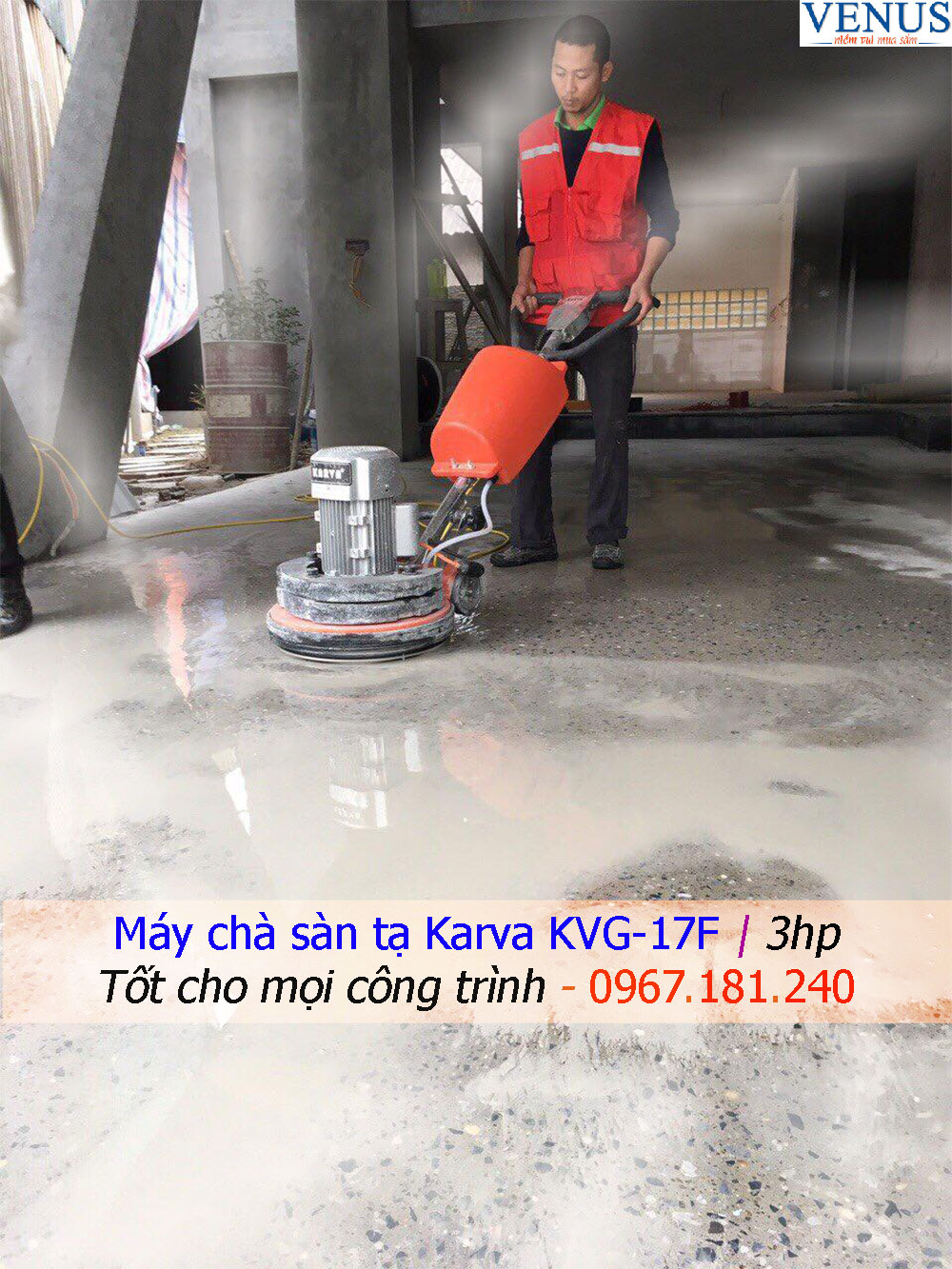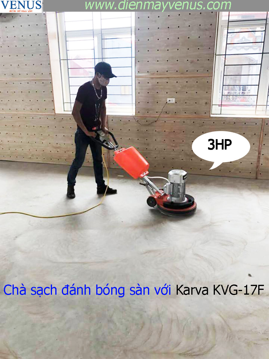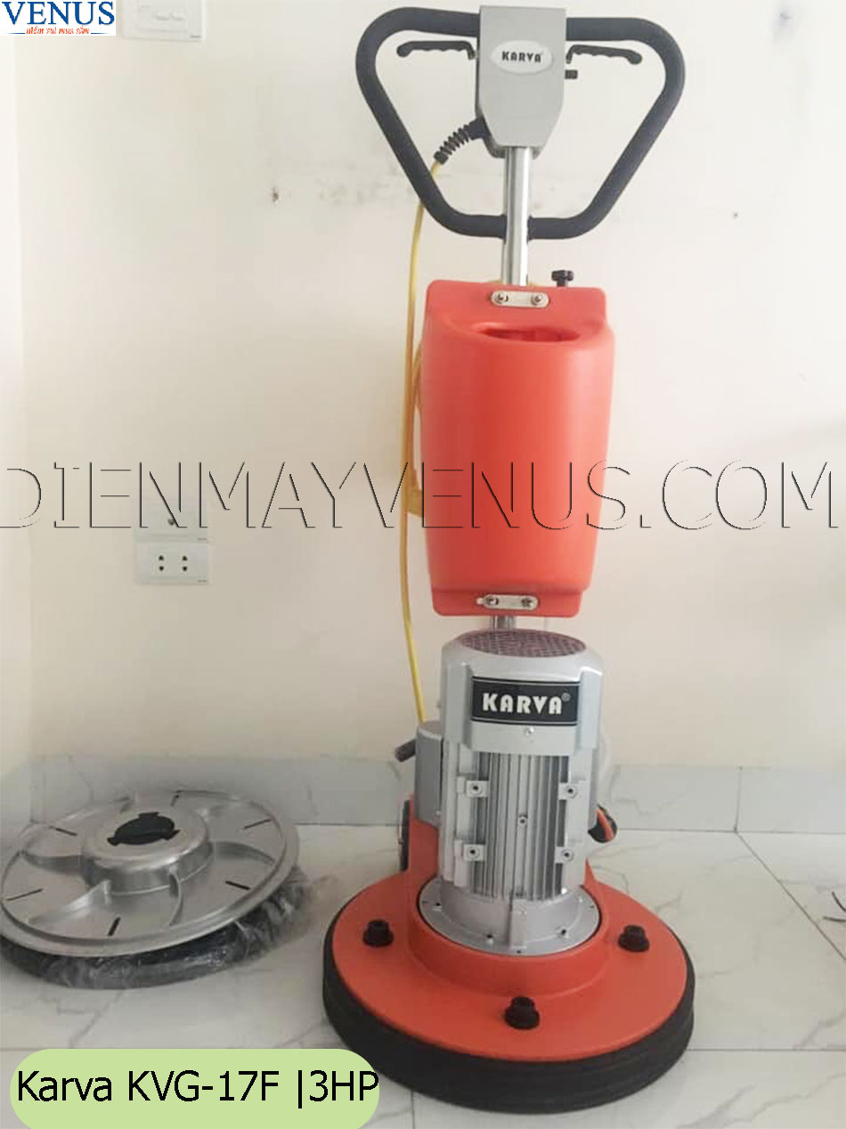 Máy đánh bóng sàn công suất lớn Karva KVG-17F công suất 3HP được đánh giá tốt nhất cho các hạng mục công trình vệ sinh công nghiệp, máy chà sàn tạ dán phù hợp cho việc đánh bóng hoàn thiện công trình xây dựng, kho bãi, nhà xưởng dịp cuối năm, Karva KVG-17F đường kính chà 18", trọng lượng tạ dán 99kg, dung tích bình chứa hóa chất 10L, tốc độ quay lên đến 200rpm/min có thể gắn phíp mài, phíp đánh bóng ưu việt, mời các bạn đến với siêu thị điện máy Venus để có giá tốt nhất - Số 104 Ngõ 192 Lê Trọng Tấn, Hoàng Mai, Hà Nội