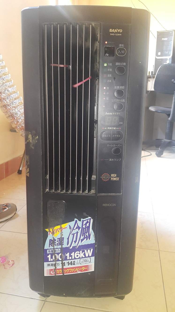 Nhà có dư cái máy lạnh di động Sanyo SAD-123HR, làm mát cho những không gian không thể có phòng kín.
