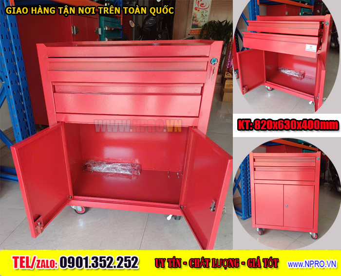 – Xe đẩy dụng cụ, xe đựng đồ nghề 3 ngăn có 1 ngăn kéo khóa