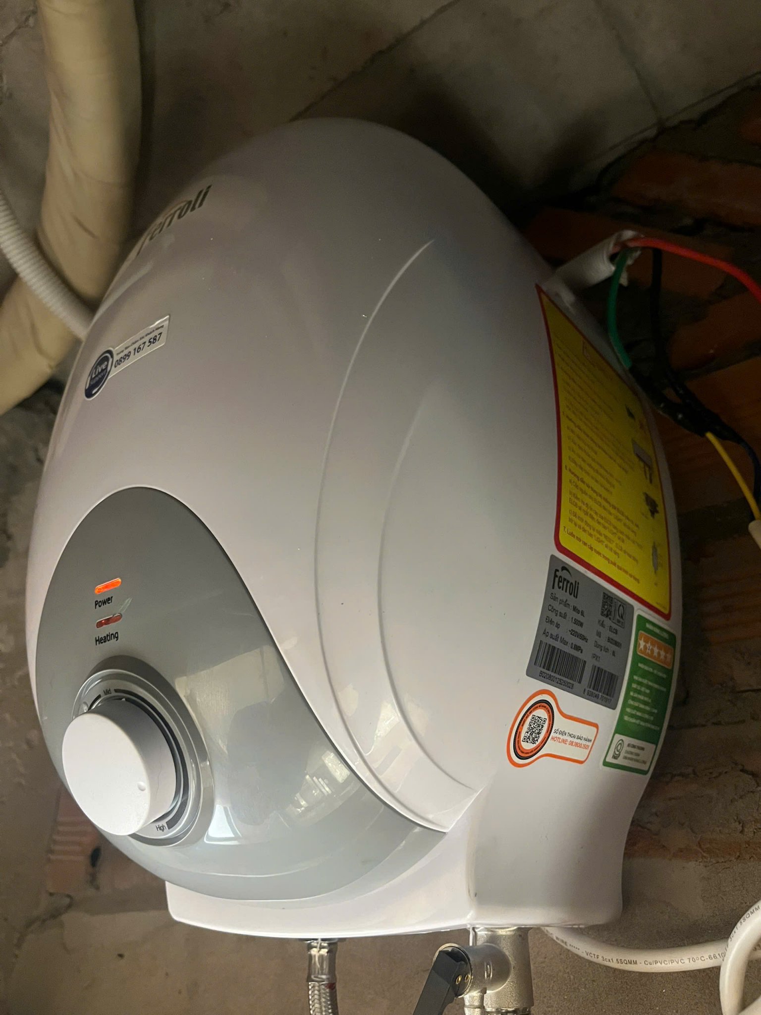 Máy Nước Nóng Ferroli Mito 6L Nhỏ Gọn, An Toàn, Tiết Kiệm