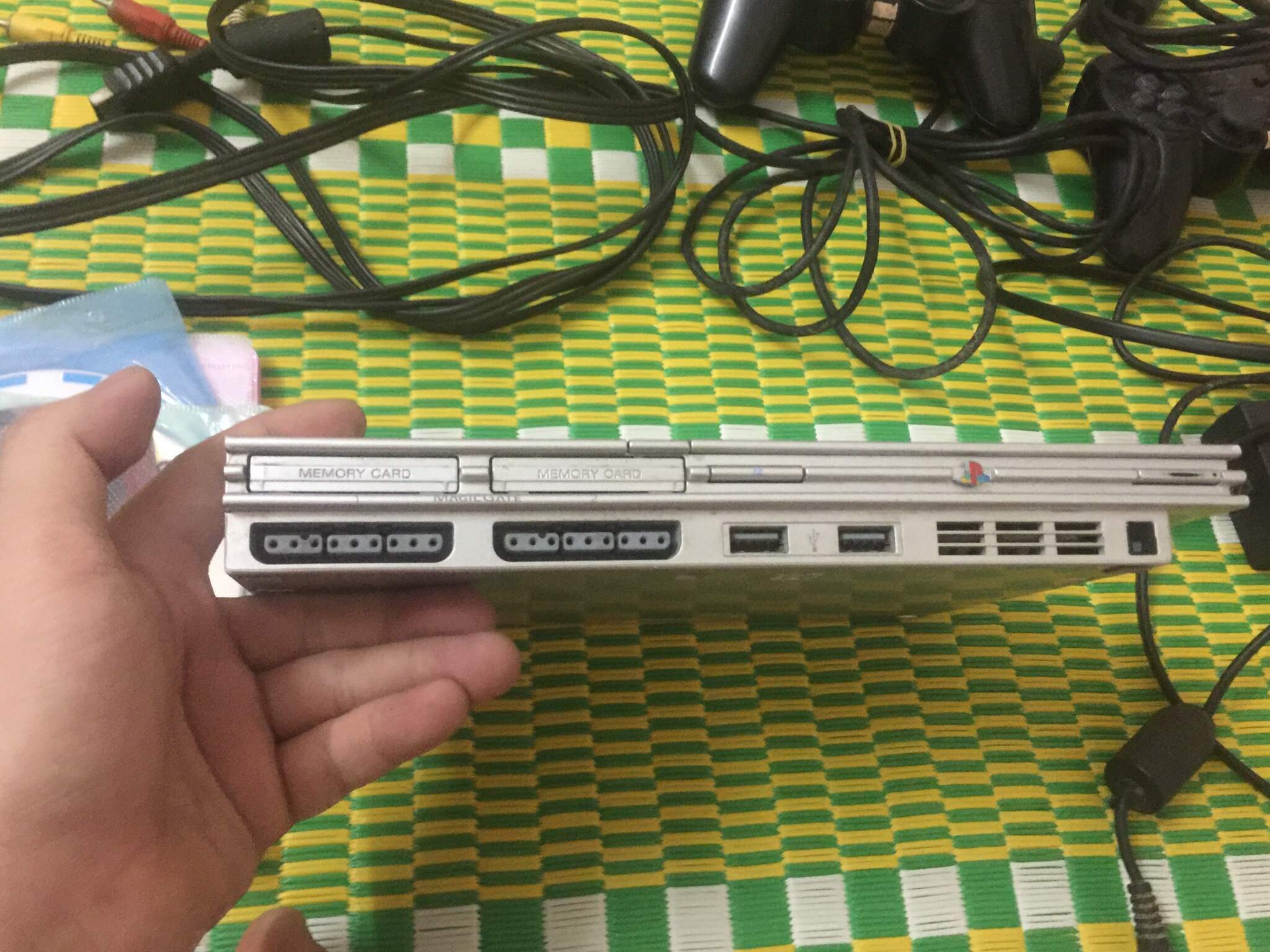 Máy ps2 trắng mắt đọc tốt đã mod chơi đuợc đĩa copy, chơi được cả trên usb. Để lại 1 triệu 100k có hai tay xịn A và H dung tê tay luôn, sạc nguồn dây av cùng thẻ nhớ và khoảng chục đĩa games hay bác nào có usb 4gb trở lên mang qua copy cho nhiều trò hay có pes 2018 tiếng việt.