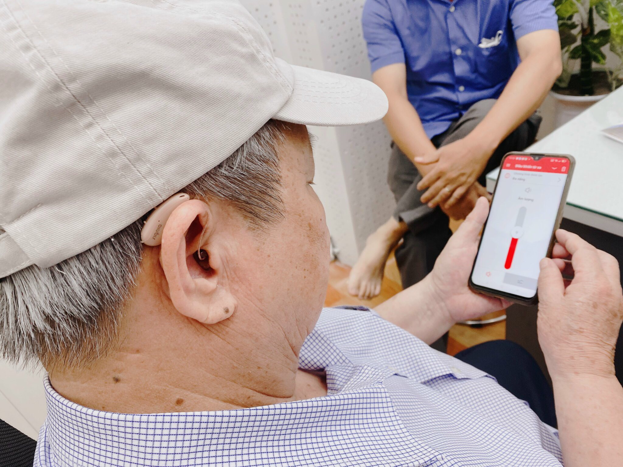 Máy trợ thính kết nối với điện thoại.
