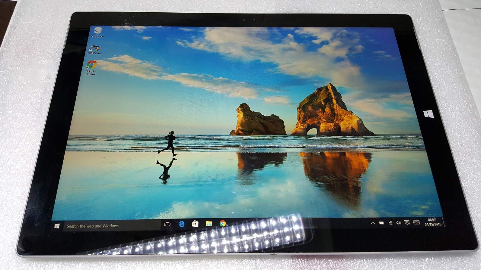 Bán 1 em Microsoft Surface Pro 3 core i5 / 4G RAM / 128G SSD, tình trạng lưng trầy 1 đường nhẹ (cọng tóc) 1cm và viền trầy nhẹ vài chổ, còn lại viền, lưng máy & màn hình hoàn hảo, không cấn móp, va chạm gì hết và đã lên Windows 10.