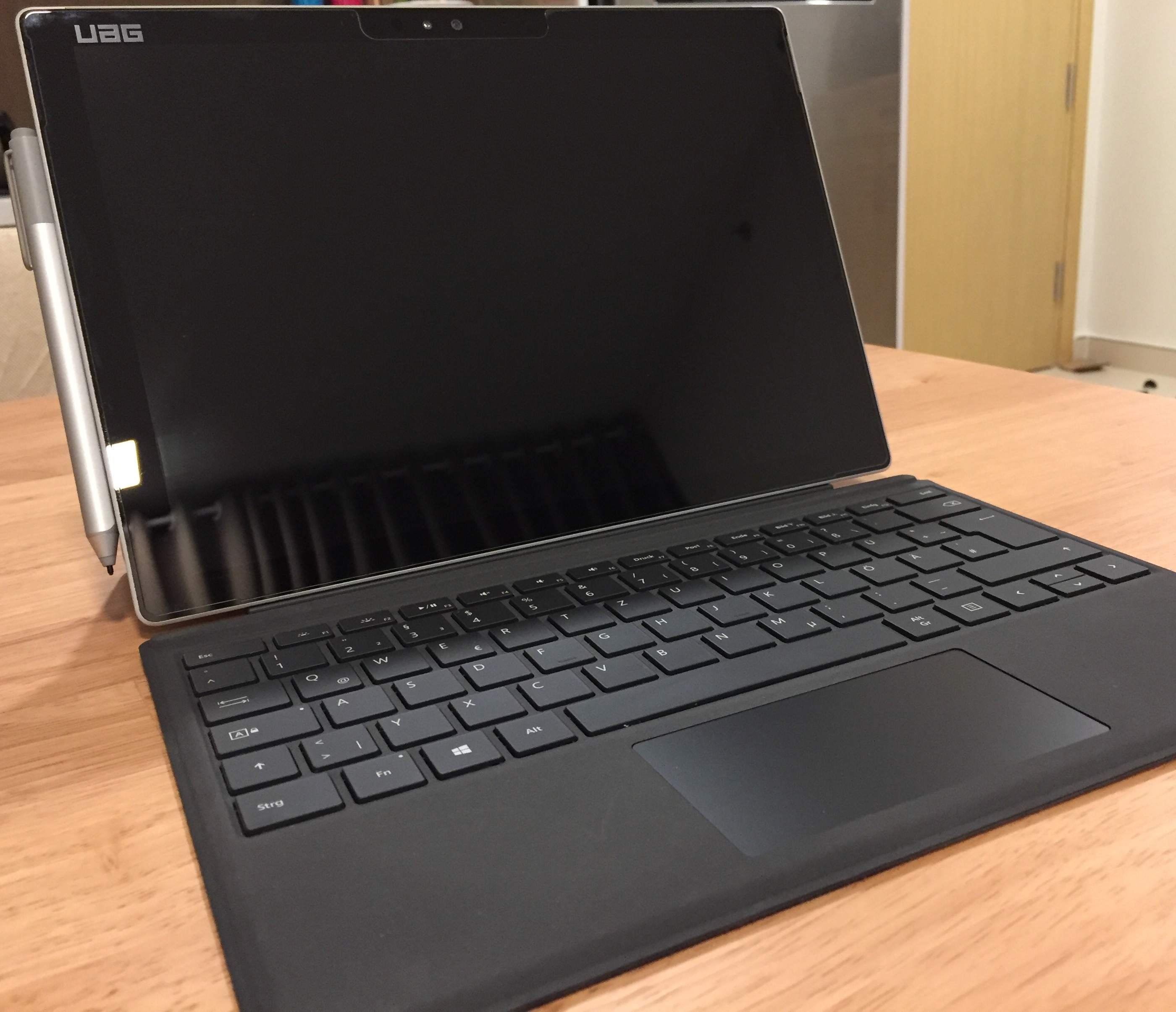 Sếp mình là người Hàn, mua chiếc Microsoft Surface Pro 4 này (Sếp mua máy tại Đức, vẫn còn chứng từ ngày order), mới chỉ sử dụng chưa được 2 năm, máy được bảo vệ bằng UAG case (kèm trong hình ảnh), Sếp sử dụng máy chủ yếu trong văn phòng, sử dụng khá cẩn thận nên máy chưa qua sửa chữa lần nào. Do muốn đổi máy mới nên Sếp để lại giá khá hấp dẫn. Đảm bảo máy còn rất mới, tốt và sạch sẽ.