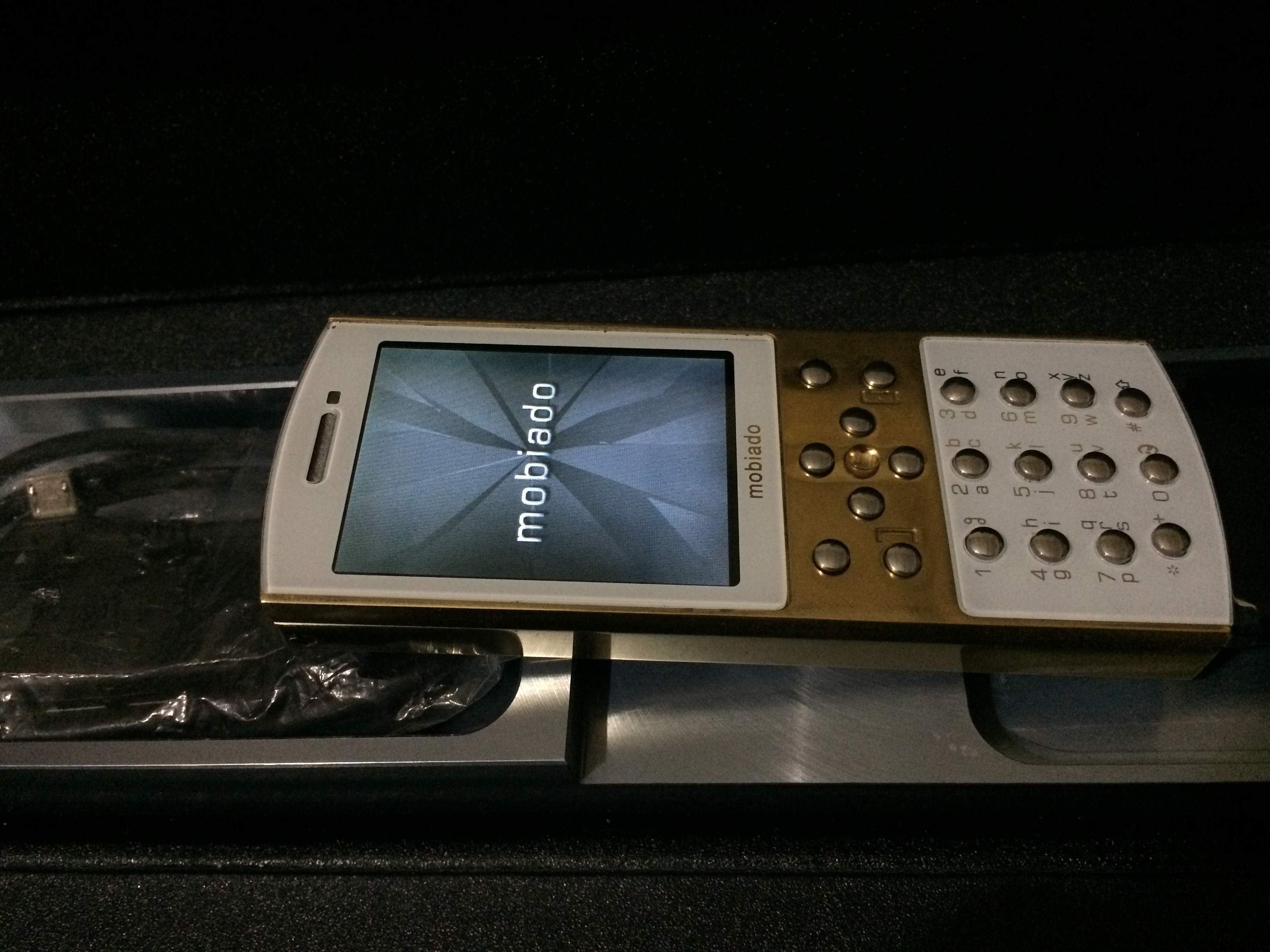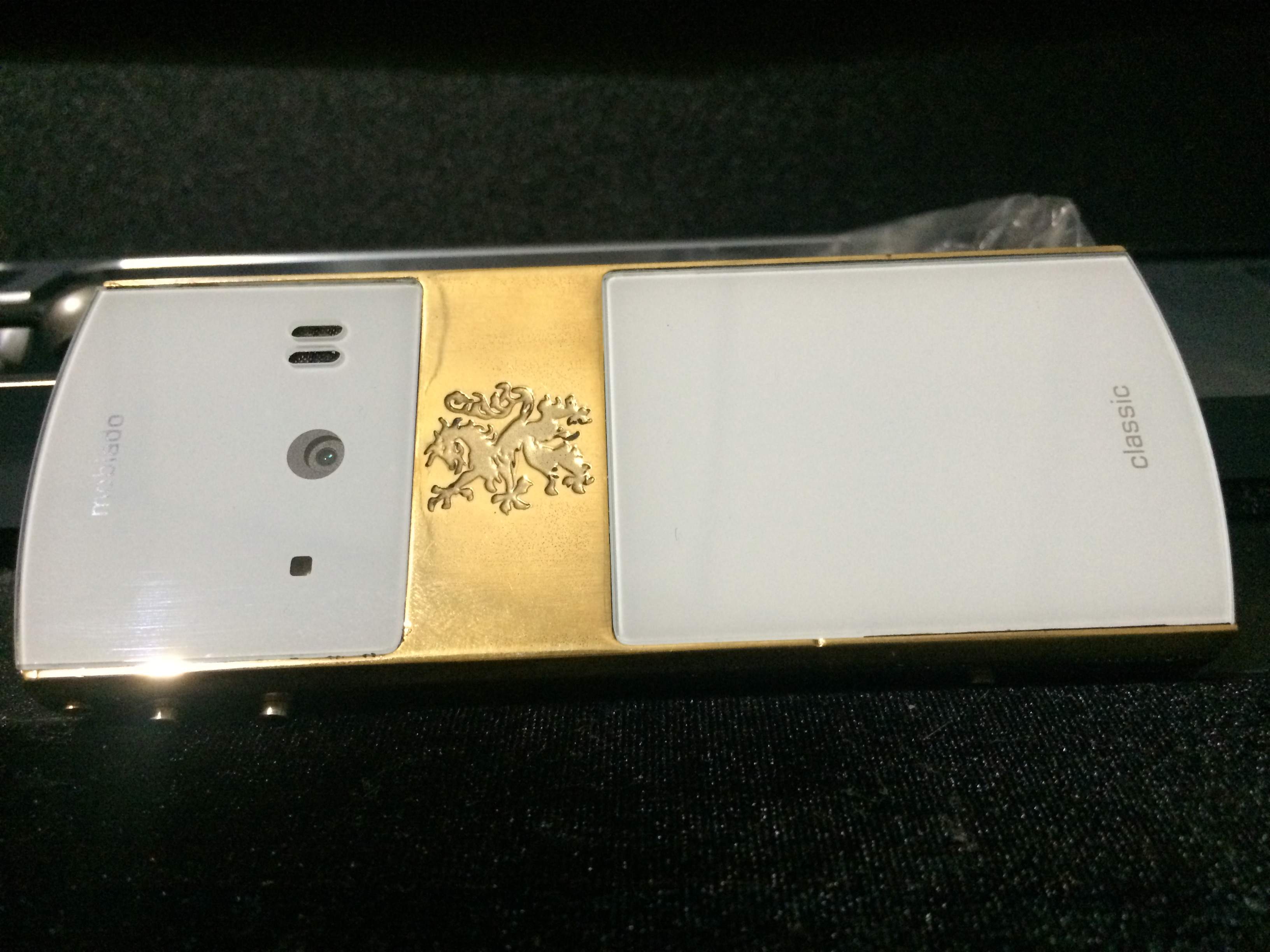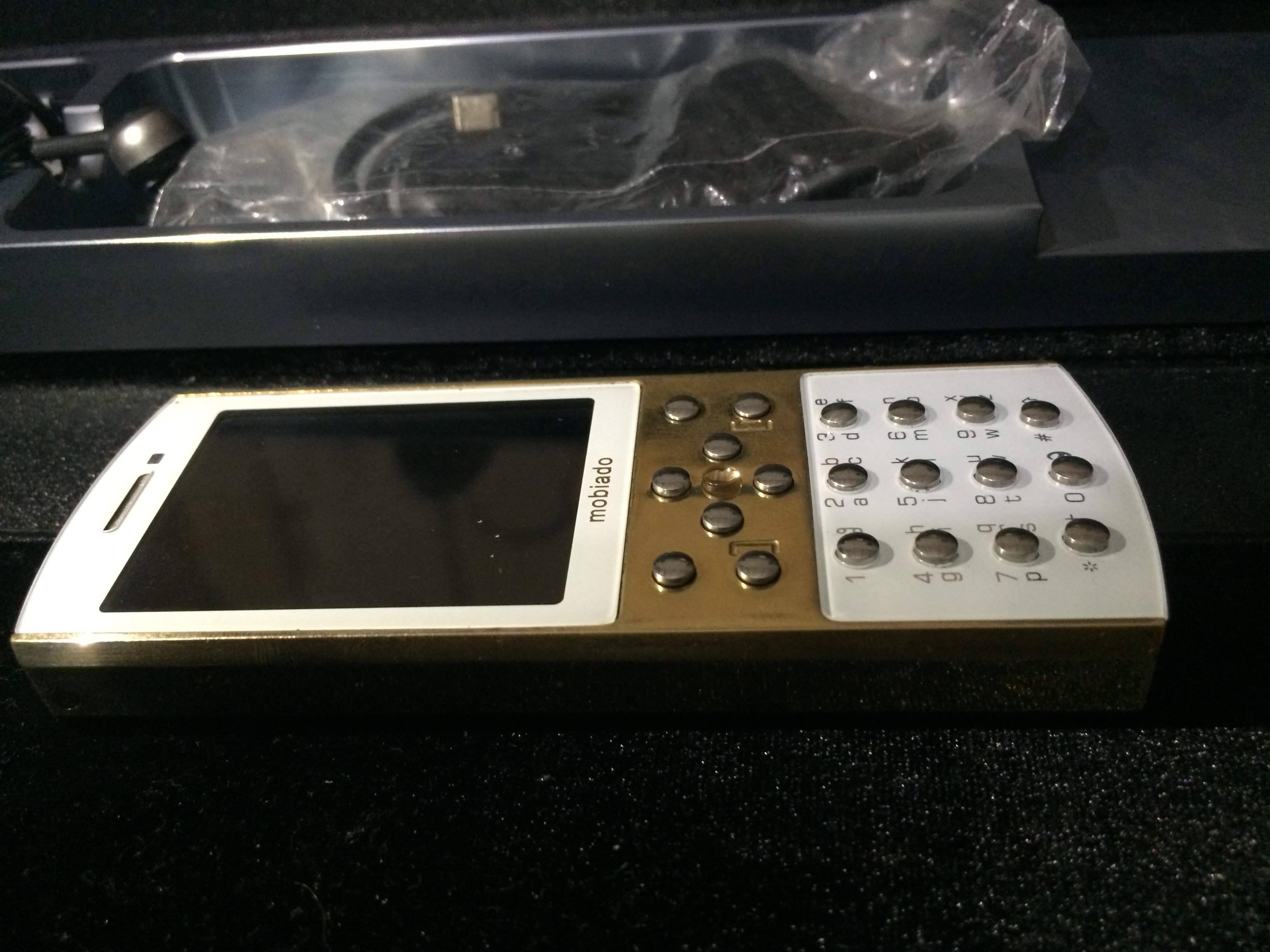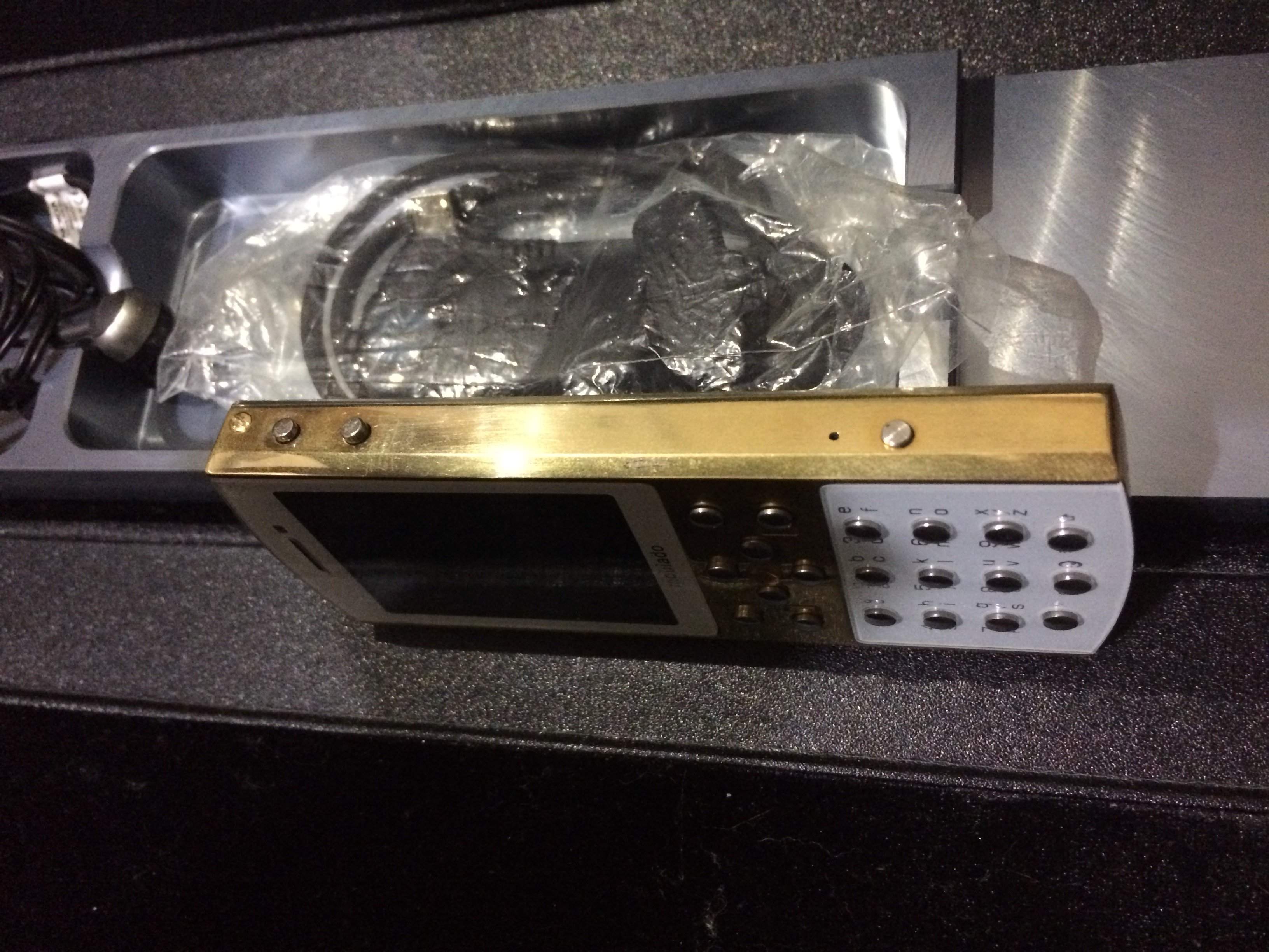 Vỏ được làm từ đồng vàng nguyên khối, cầm như vàng thật, phím kim loại thép ko rỉ