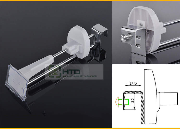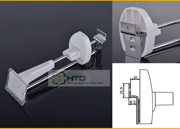 • Móc treo chống trộm dạng cài vào thanh hộp inox