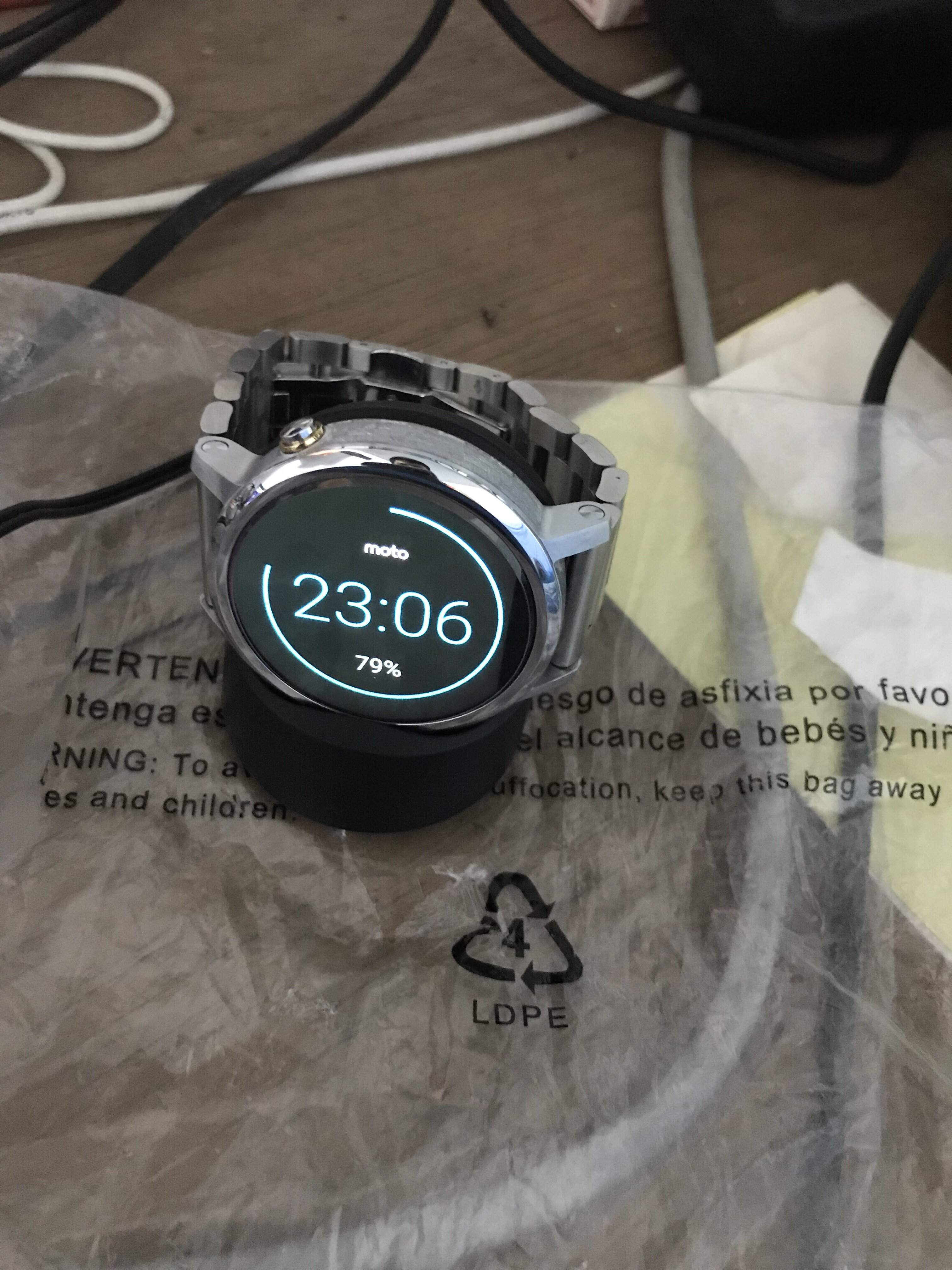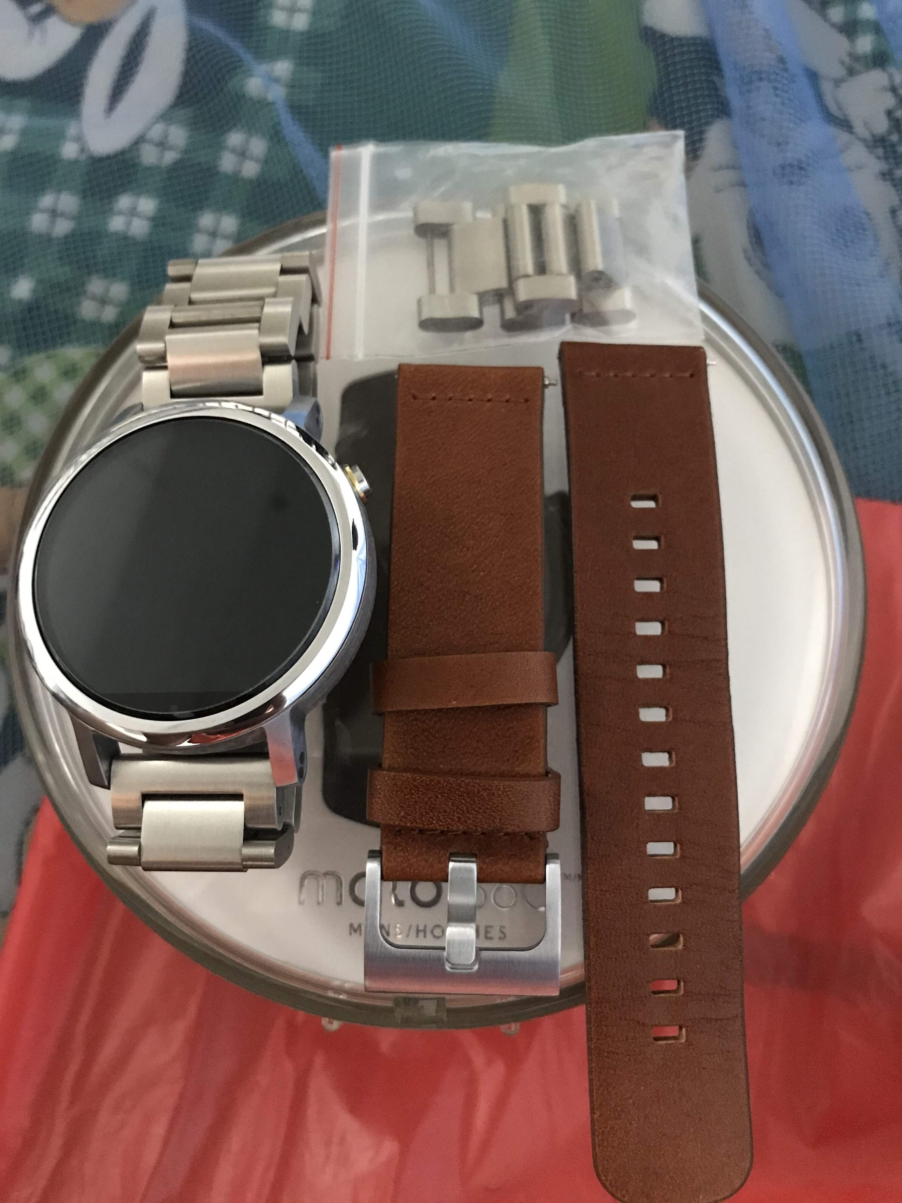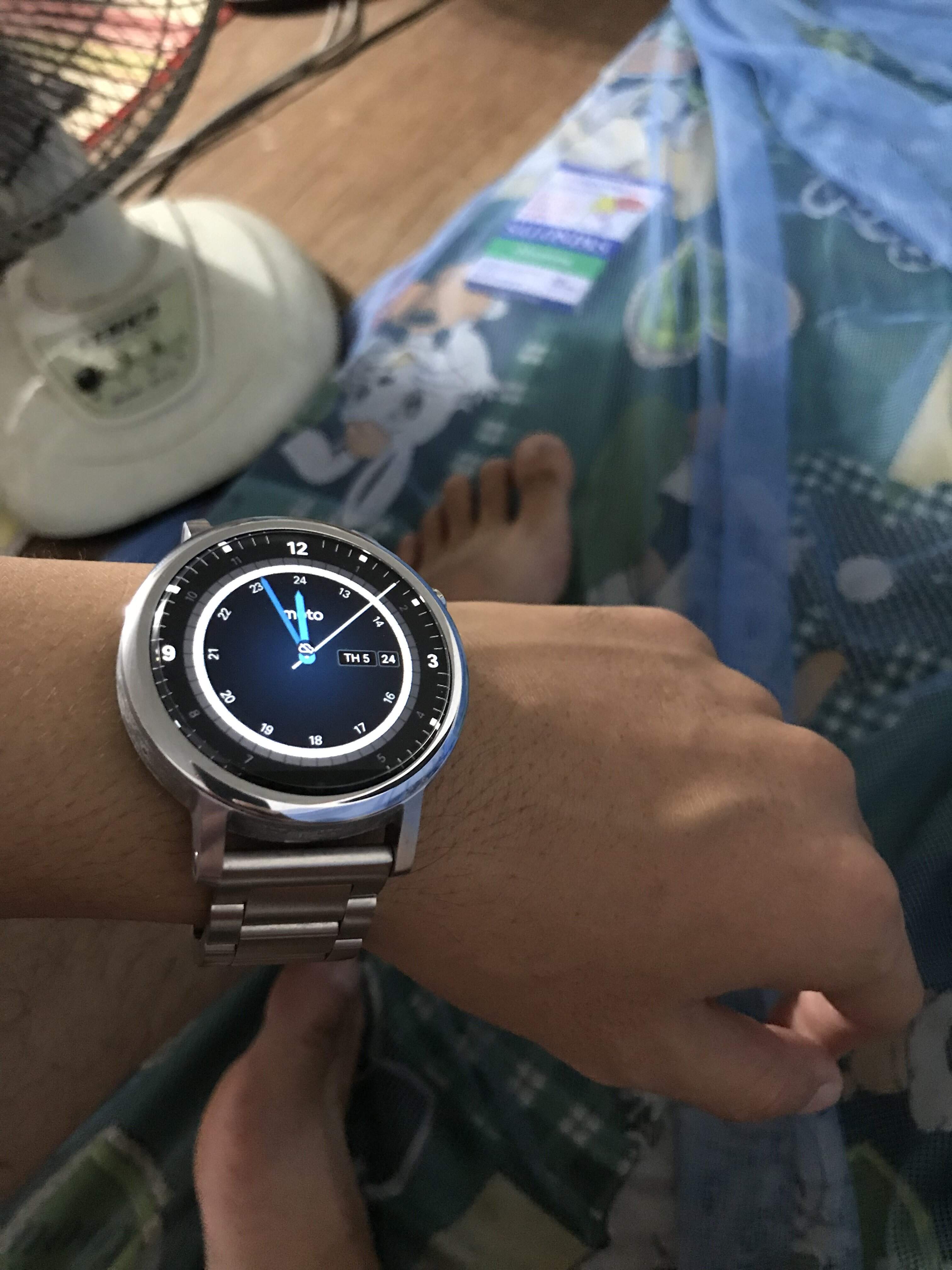 Dán cường lực mặt trước, chưa dám xài, màn chưa vết trầy, mới ken. Còn bảo hành tầm 4 tháng chính hãng. Dây da zin còn chưa xài, dây thép xịn xài rất hợp với đồng hồ.