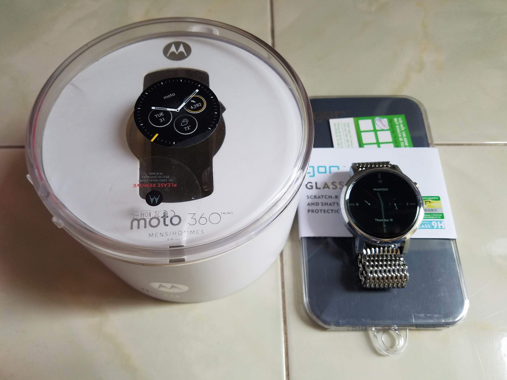 Trải nghiệm xong cần ra đi em Moto 360 gen 2 46mm, ngoại hình leng keng như hình do xài kĩ. Máy đầy đủ fullbox + 1 dây thép + 1 miến dán cường lực màn hình.