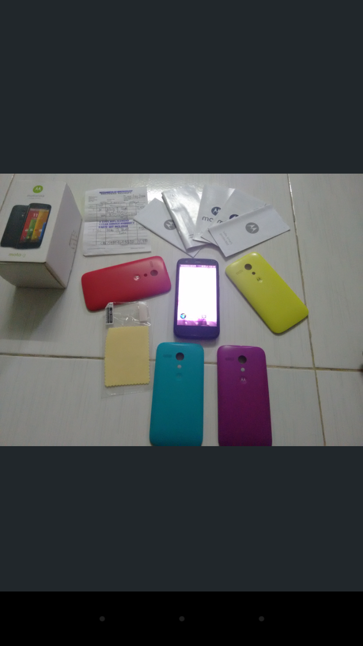 Moto g1.xt1033.fullbox.2 sim.bộ nhớ 16g.nguyên zin.không lỗi lầm.máy đẹp.xấu kính cường lực.máy vợ dùng.ae quan tâm pm.máy gồm 5 nắp lưng zin đi kèm.box có sách vổ.hoá đơn mua máy(xách tay).riêng nắp vàng mua mất 3 hay 5 trăm trên cùng hoá đơn.có miếng dán màn đi kèm theo máy còn nguyên chưa dùng.thành XXX.anh chup file lon lên ko up dc.phai chup lai anh man hinh.ae nao cân chi tiet hon zalo cho mình.