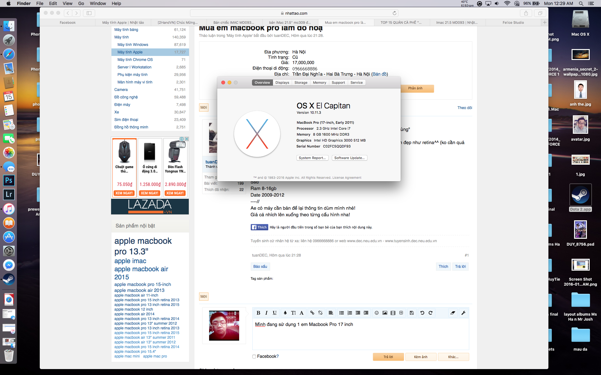 Mình đang sử dụng 1 em Macbook Pro 17 inch, trước đây mua max option của dòng này, cấu hình