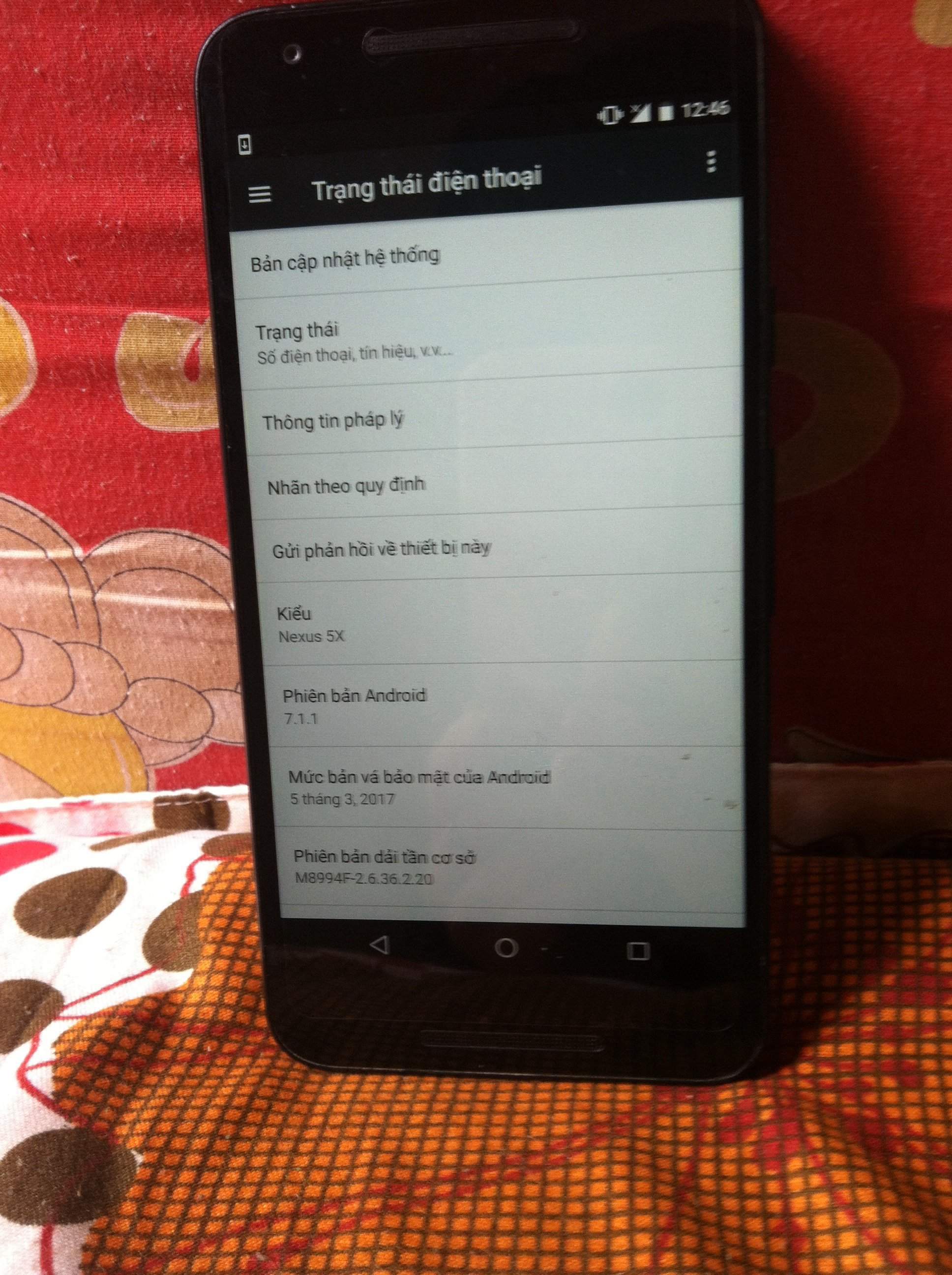 Hiện mình đang cần bán em Nexus 5x màu đen, bản 32Gb. Máy đang chạy android 7.1.1 (có thể nâng cấp tiếp lên 8.0). Máy nguyên zin, mặt trước sau còn đẹp, chỉ cấn chút xíu ở góc. Vân tay và các chức năng còn hoạt động tốt. Máy chạy siêu mượt.