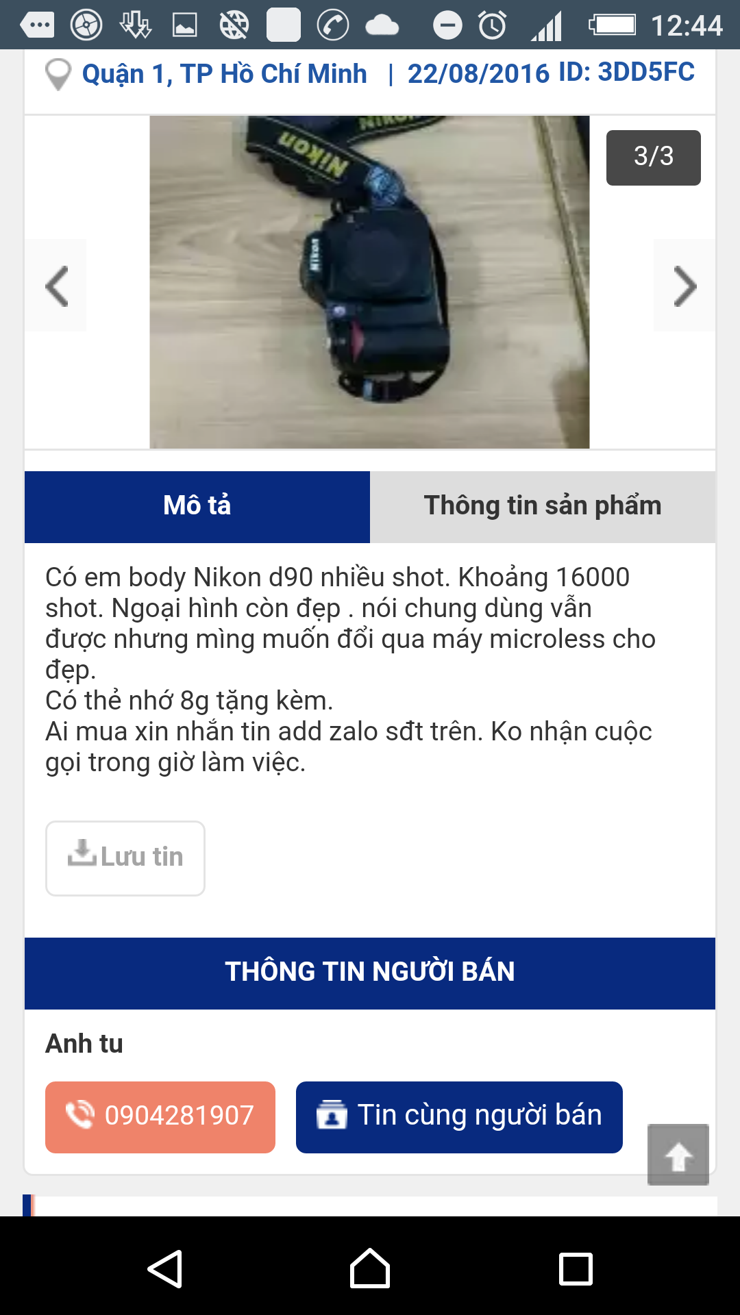 Phụ kiện: Pin, sạc zin, dây đeo zin.
