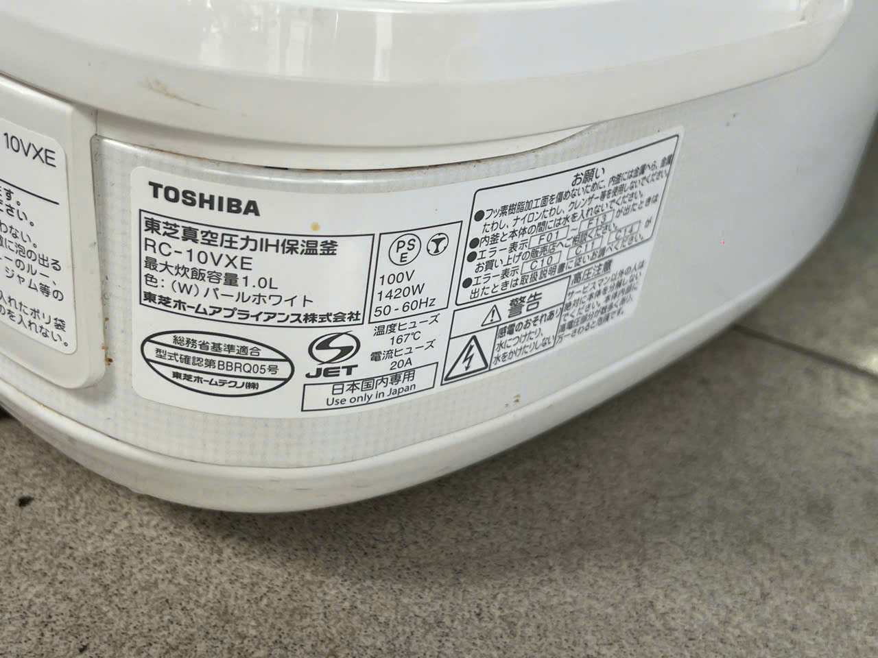 NỒI CƠM TOSHIBA 1L RC-10VXE ÁP SUẤT - HÚT CHÂN KHÔNG, Độ mới còn rất cao