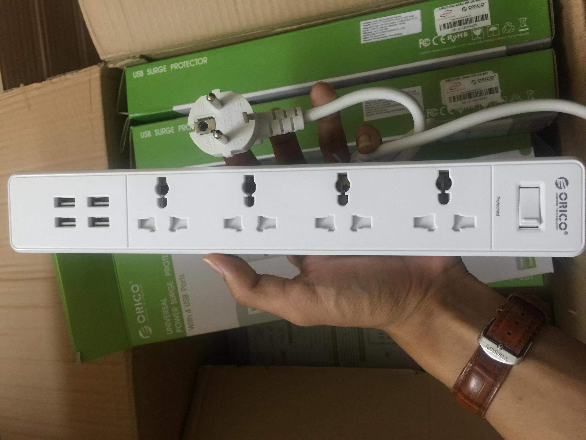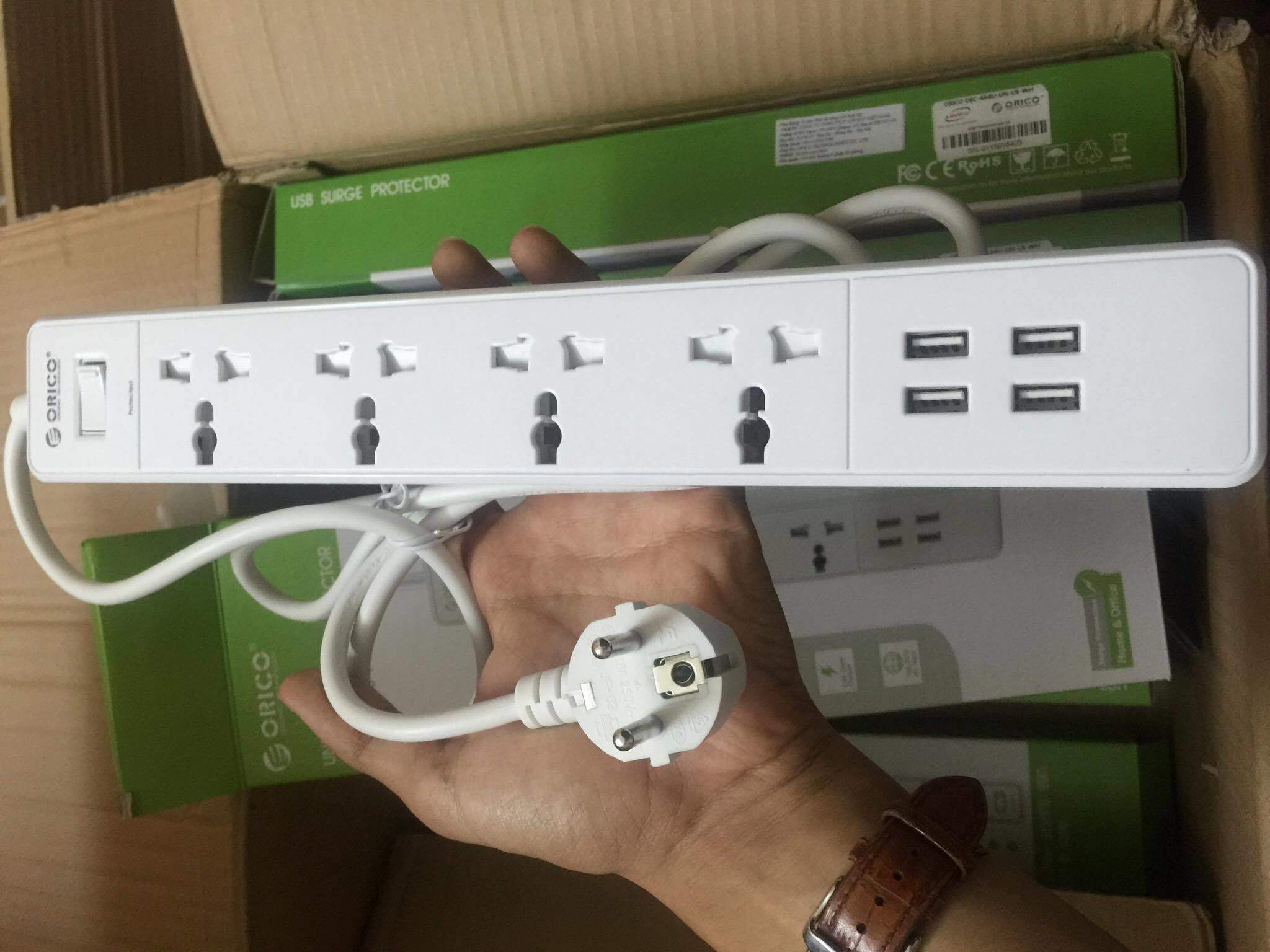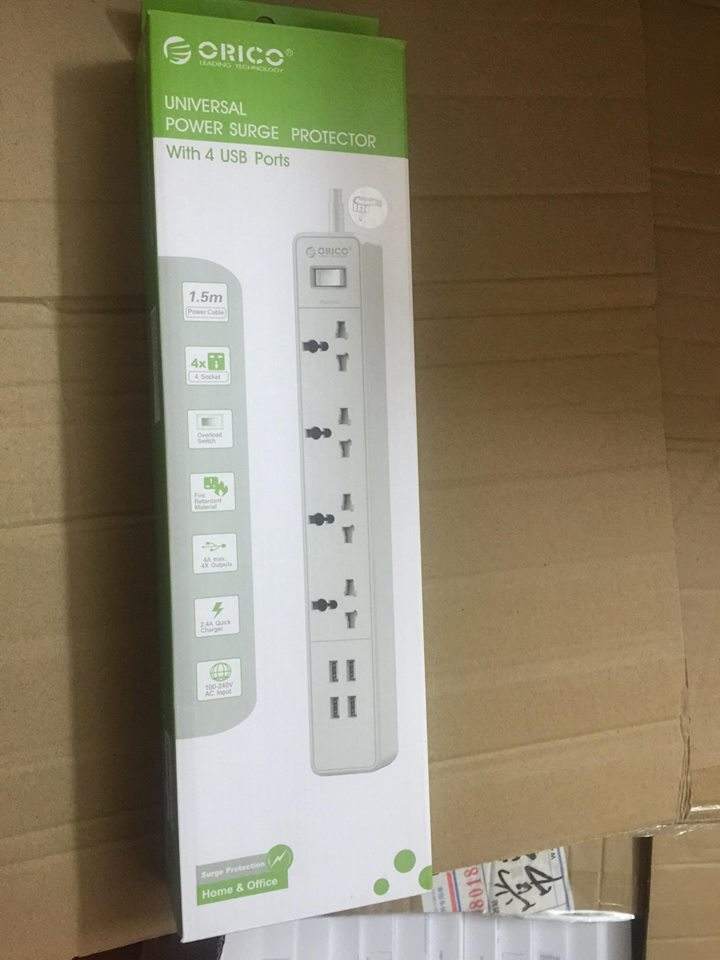 Ổ cắm nối dài ORICO OSC-4A4U Với 4 cổng cắm tiện lợi và an toàn, thêm 4 cổng usb sạc đa năng 2.4A mỗi cổng, sản phẩm an toàncho thiết bị điện tử, máy tính, hệ thống giải trí gia đình, và hơnthế nữa