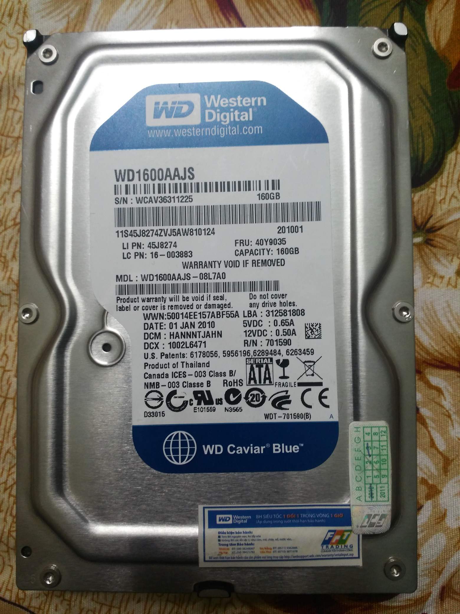 Bán ổ cứng PC Western Digital Blue 160G hết BH, cơ ngon, ko Bad, đang chỉ lưu dữ liệu. Giá 320K Lh: 0979.484.chín tám tám. (sms) tks !