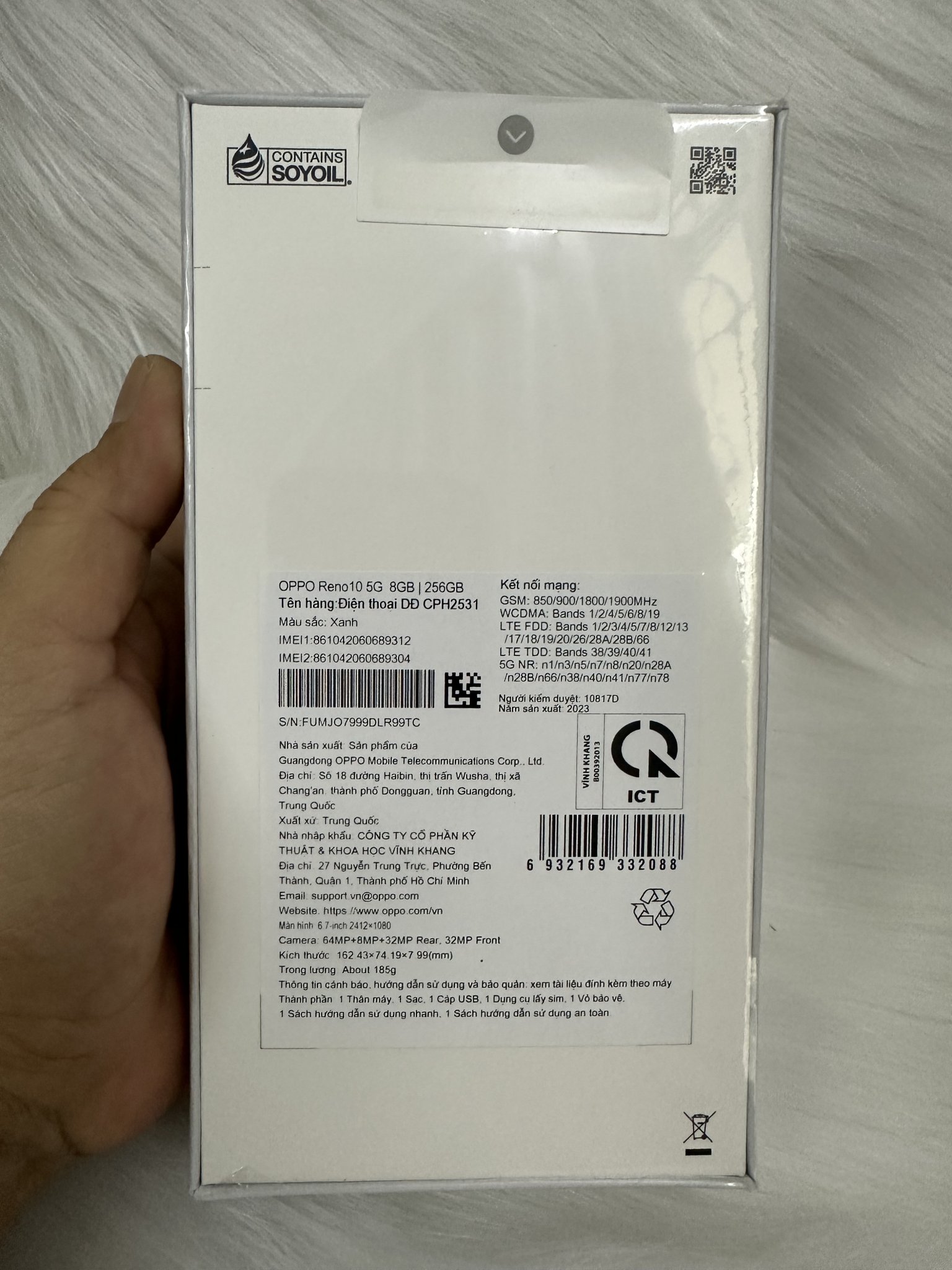 Bán oppo reno 10 5G ram8/256 xanh newseal chính hãng phân phối tại Việt Nam chưa sử dụng