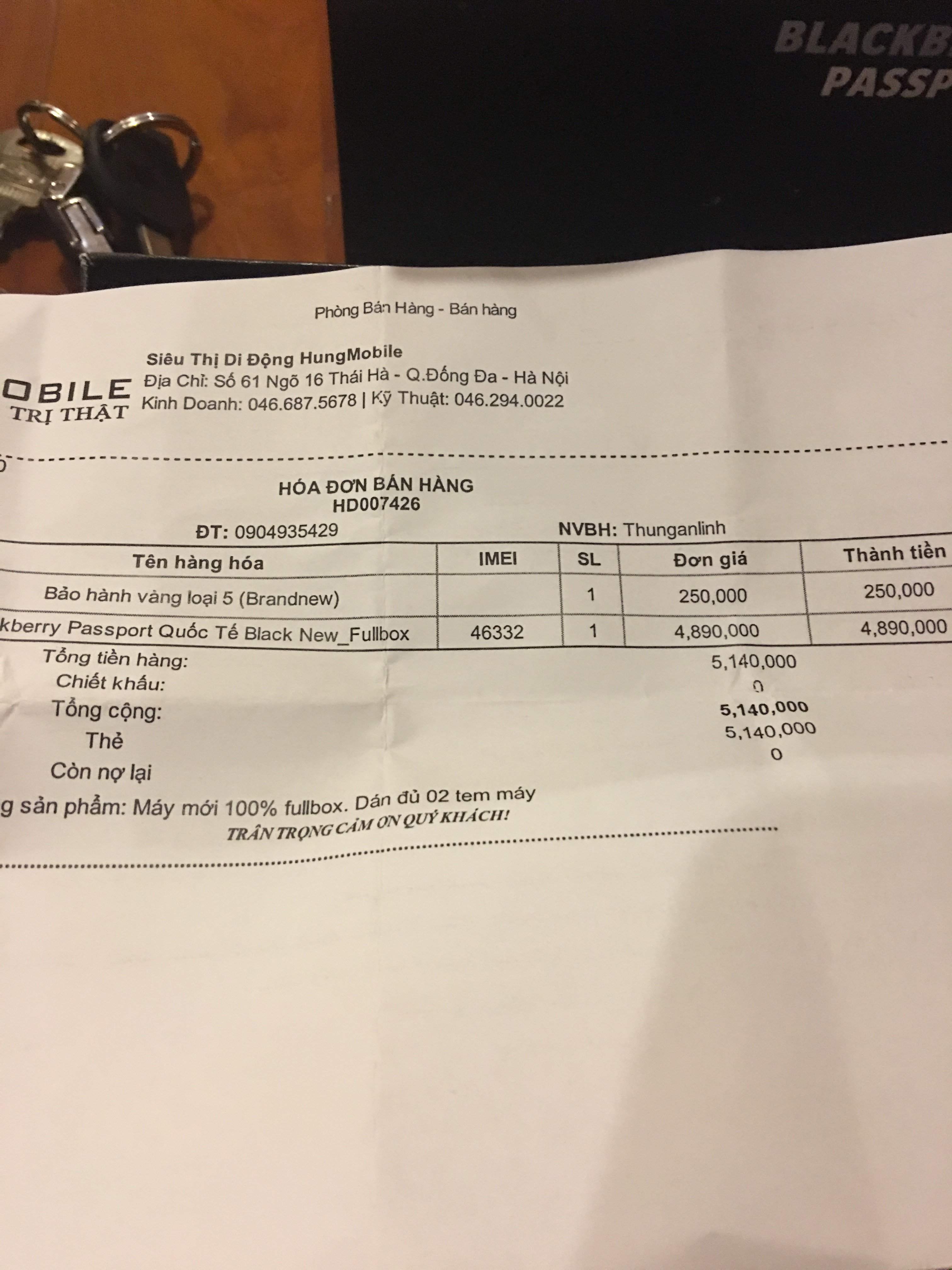 Phiếu bảo hành HungMobile đầy đủ