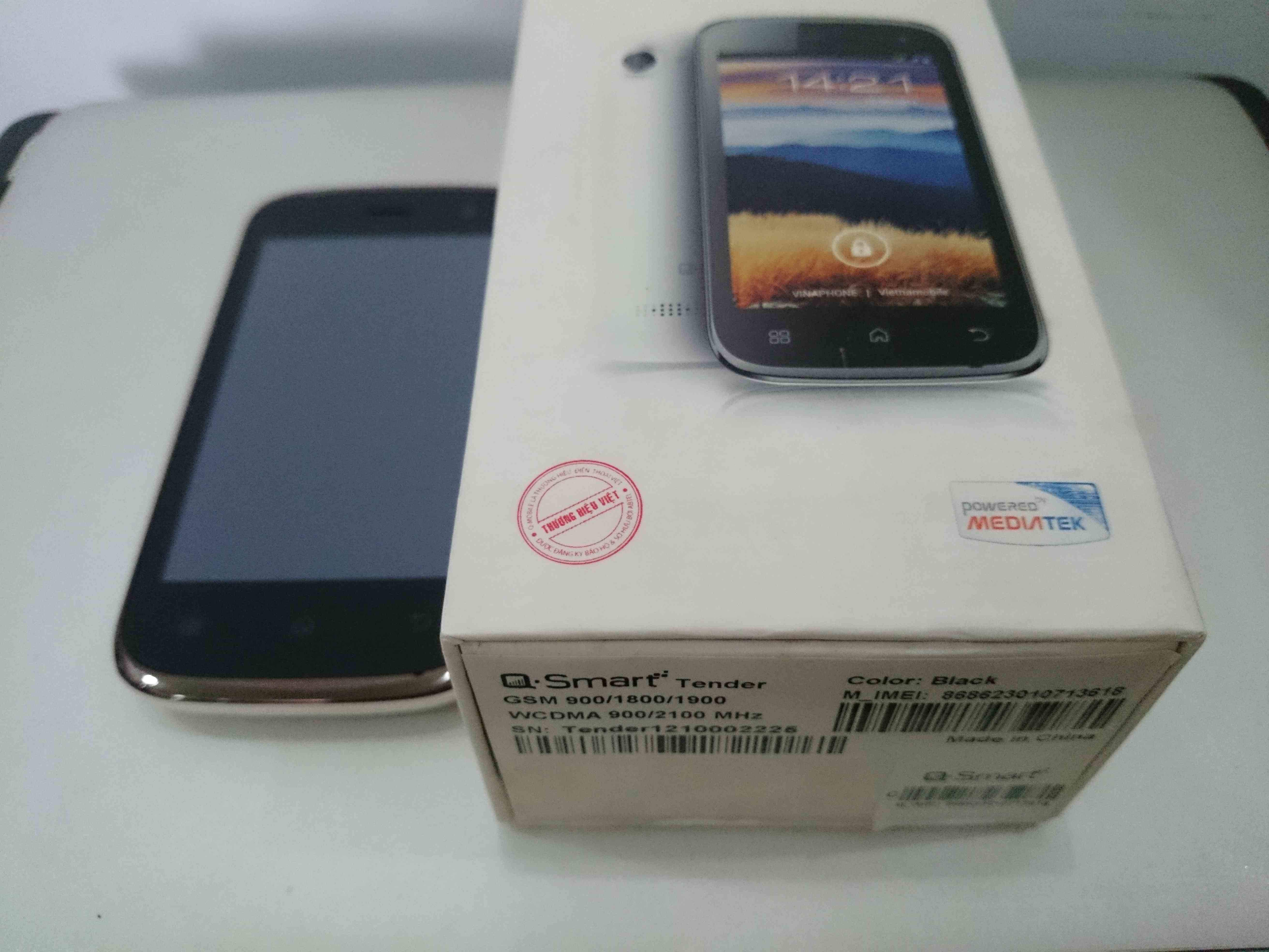 Bán Q-Smart Tender hàng CH còn khá mới, chưa sửa chữa, còn tem đầy đủ. Màn hình 4"IPS, chip Dual Core 1Ghz, 2 sim 2 sóng. Máy xài tốt mọi chức năng. Màn hình còn mới tinh, do theo thời gian sử dụng nên bị trầy xước nhẹ vài chỗ. Phụ kiện có sạc. Xem máy tại nhà ở Quang Trung, Gò Vấp. Cảm ơn!