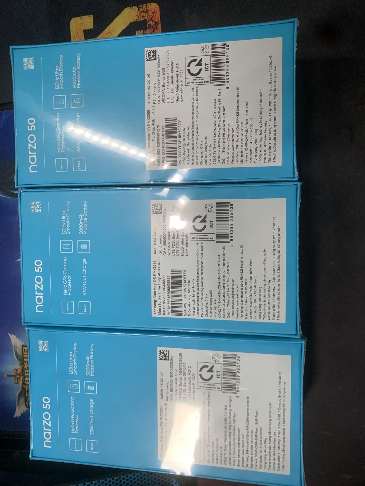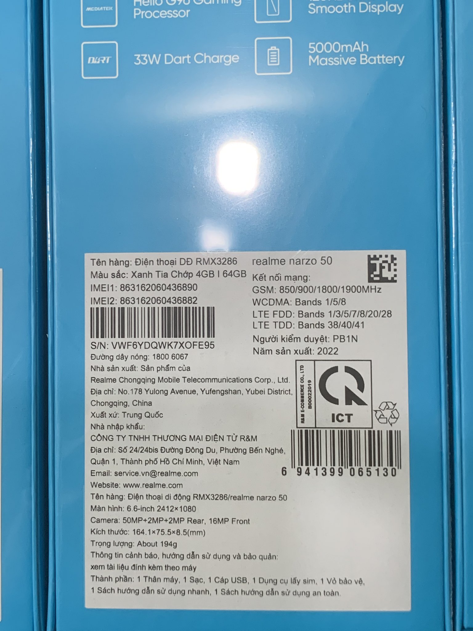 Realme Narzo 50 phiên bản 2022 mới nhất. Hàng chính hãng, bảo hành 1 năm trên toàn quốc. Màu xanh, mới nguyên siu chưa khui hộp, chưa active. Ae mua tự tay đập hộp sản phẩm.