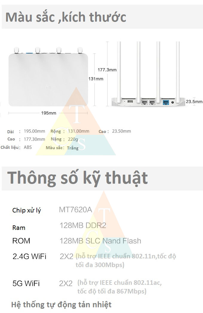 Là bộ phát wifi của hãng Xiaomi, với 4 râu, bộ nhớ flash 128MB, 2 băng tần wifi 2.4Gb và 5Gb cho phép bộ phát wifi này có thể tải được rất nhiều thiết bị cùng lúc, ngoài ra có thể phát sóng rất xa và khỏe...