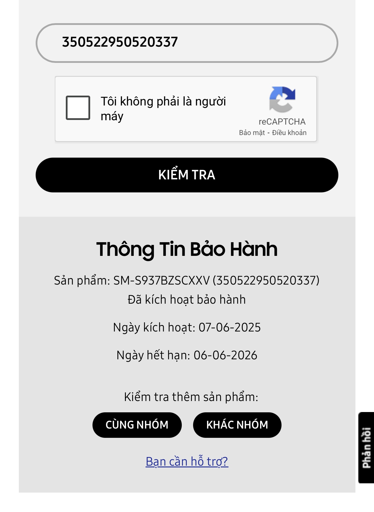 . Máy BH Samsung: 6/2026