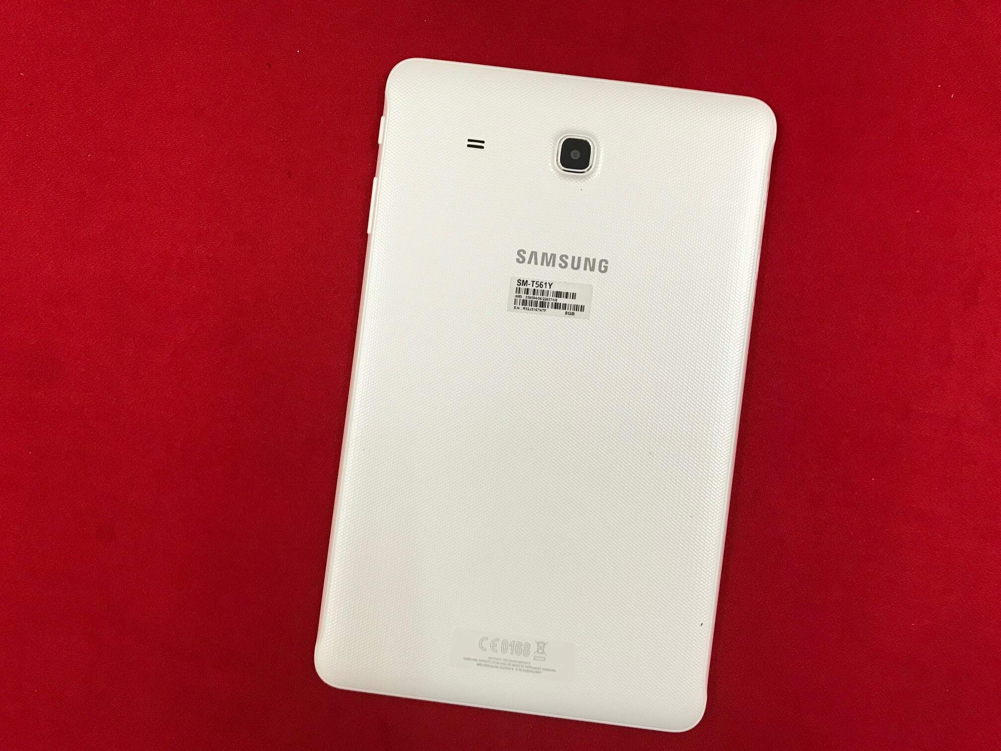 Samsung Galaxy TAB E 9.6 (SM-T561Y) (Quad-Core 1.3GHz, 1.5GB RAM, 8GB Flash Driver, 9.6 inch, Android OS) WiFi, 3G Model Metallic White, máy dep . ko trầy suớt , phu kiên gồm sạc . cáp , bao da .