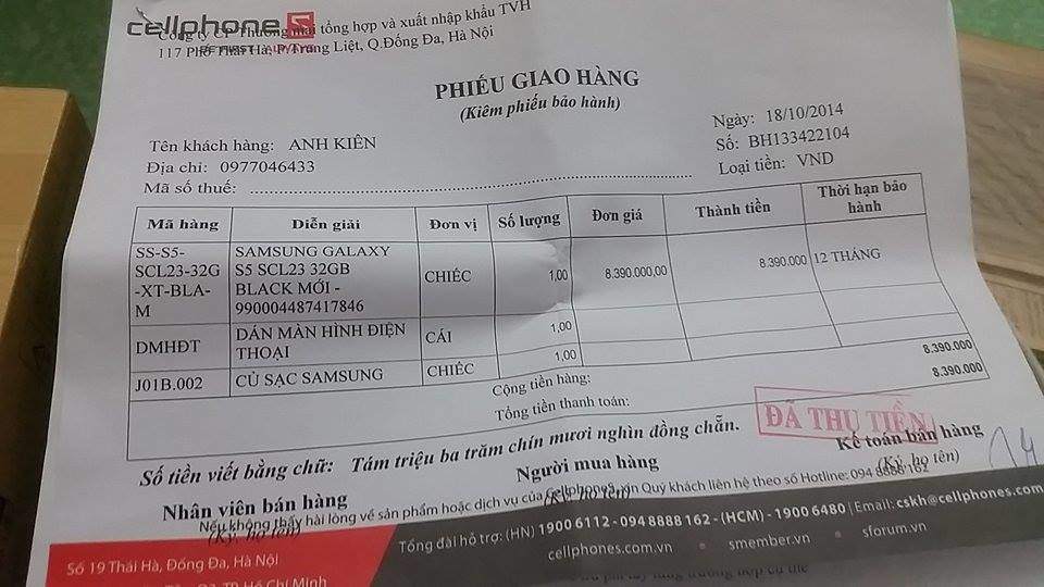 Mình có cây Samsung S5 hàng AU màu đen mua ở CellphoneS cầu giấy, full box, đầy đủ giấy tờ mua bán, mua hồi tháng 10/2014. Nay muốn gả bán, giá : 4t8.không mặc cả, không nhận SMS, thích thì k nên tiếc 2k cuộc gọi. ai cần liên hệ mình nhé: 0977 046 433,