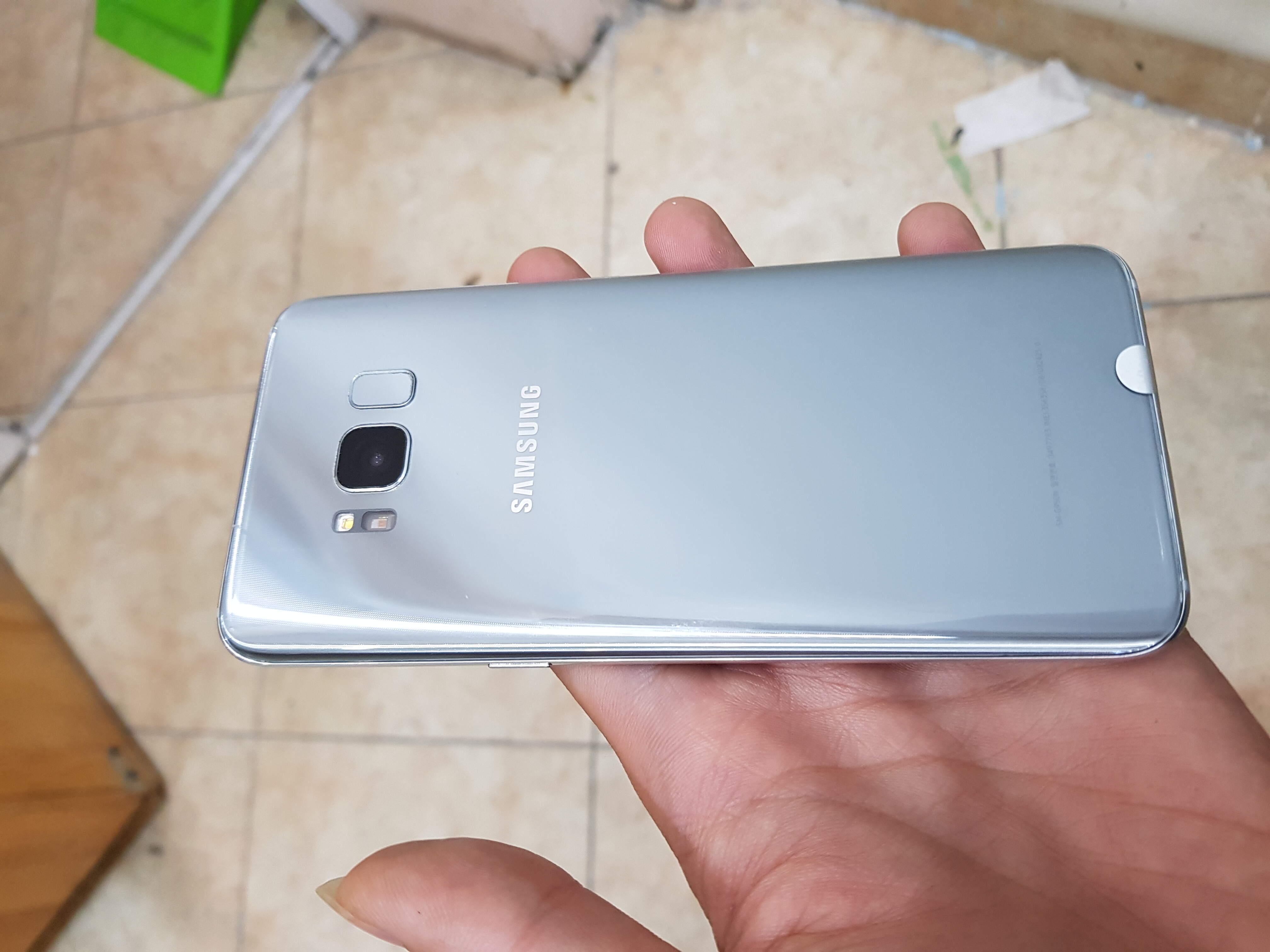 E cần bán máy S8 màu bạc, bản Hàn (có thể lên 2sim) , ngoại hình 97%, viền xước, màn và lưng đẹp, màn bị 1 chấm đen, dùng ko ảnh hưởng nhiều, còn ko ám ố, mọi chức năng ổn định, phụ kiện sạc cáp zin. E bán giá chuẩn ạ.