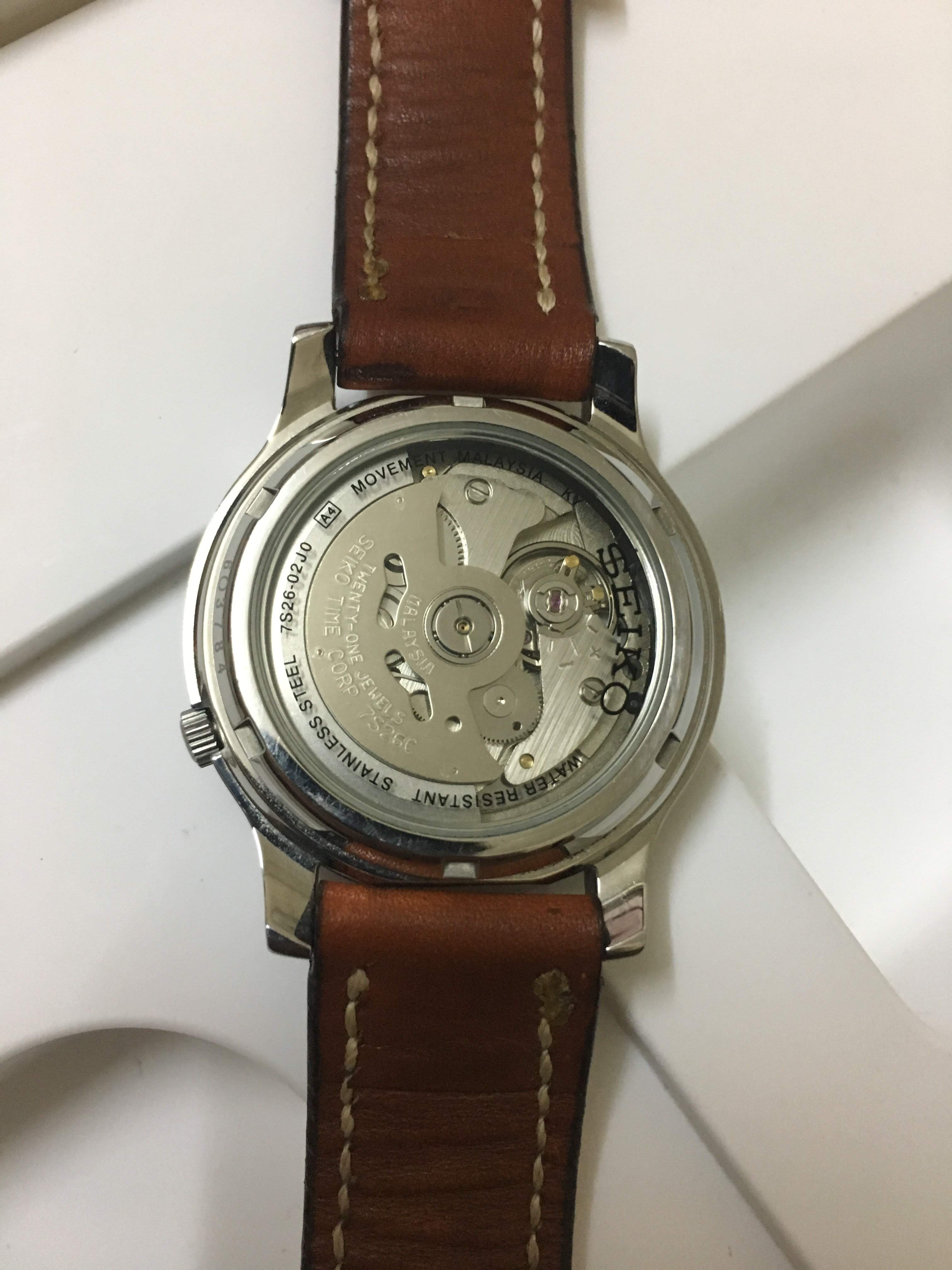 Chuyển qua dùng smartwatch nên em thanh lý hết đồng hồ cơ. Seiko 5 quân đội bản 37mm. Đã dùng khoảng 7 tháng, không vết xước, thay dây da bò handmade, còn nguyên 2 dây đi kèm, hộp đựng, giấy bảo hành.