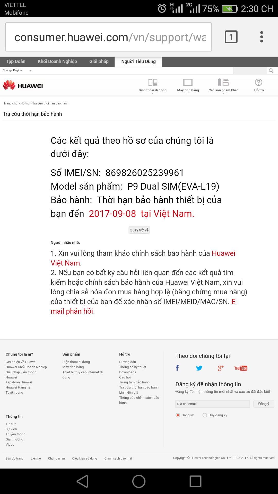 Thừa máy nên mình bán P9 hàng công ty màu vàng.Máy còn bảo hành đến tháng 9/2017