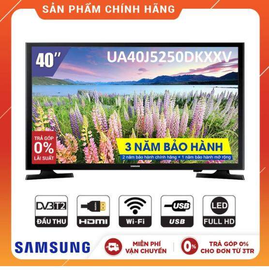 Thông số kỹ thuật chi tiết Smart Tivi Samsung 40 inch #UA40J5250D Tổng quan Loại Tivi:Smart tivi cơ bản Kích cỡ màn hình:40 inch Độ phân giải:Full HD Kết nối Kết nối Internet: Cổng LAN, #Wifi Cổng HDMI:2 cổng Cổng AV:Có cổng Composite và cổng Component Cổng xuất âm thanh:Jack loa 3.5 mm USB:1 cổng Tích hợp đầu thu kỹ thuật sốVB-T2 Tính năng thông minh (Cập nhật 05/2018) Hệ điều hành, giao diện: Samsung #Smart Hub Các ứng dụng sẵn có:Trình duyệt web, YouTube, Netflix Các ứng dụng phổ biến có thể tải thêm: #ZingTV, NCT, BenThanh Karaoke,ZingMP3 Remote thông minh:Không dùng được Kết nối không dây với điện thoại, máy tính bảng: Chiếu màn hình bằng Miracast (Screen Mirroring) Kết nối Bàn phím, chuột:Có thể kết nối (sử dụng tốt nhất trong trình duyệt web) Công nghệ hình ảnh, âm thanh Công nghệ hình ảnh: #Micro Dimming Pro, Mega Contrast, Hyper Real Engine, PurColor Tần số quét thực:240 Hz Công nghệ âm thanh: #Dolby Digital Plus Thông tin chung Kích thước có chân, đặt bàn:Ngang 92.27 cm - Cao 55.25 cm - Dày 17.03 cm Khối lượng có chân:7.2 kg Kích thước không chân, treo tường:Ngang 92.27 cm - Cao 53.1 cm - Dày 7.26 cm Khối lượng không chân:7 kg Nơi sản xuất:Việt Nam Chất liệu:Viền nhựa, chân đế nhựa Năm ra mắt:2018 Bộ sản phầm bao gồm: Sách hướng dẫn, Remote, Chân đế Bảo hành 24 tháng.