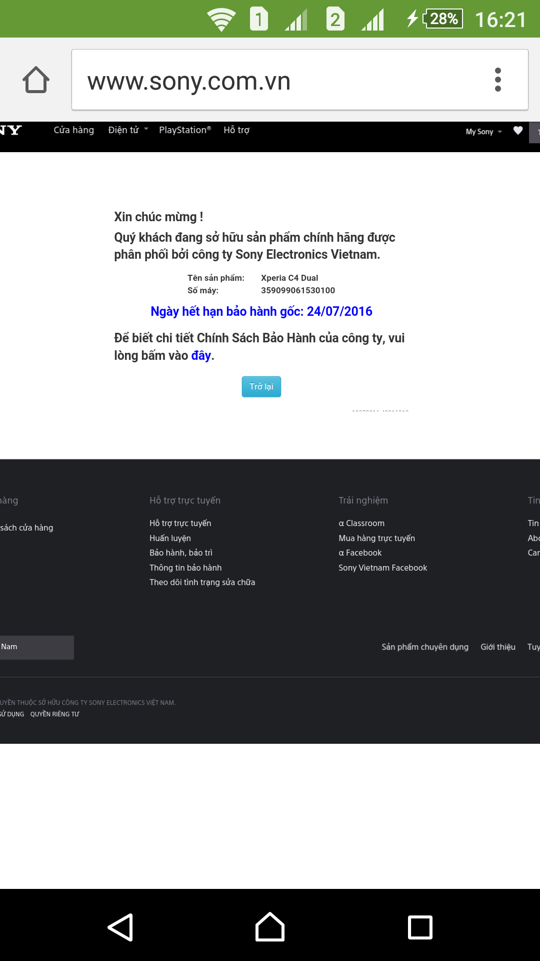 Mình cần bán Sony C4 Dual còn bảo hành đến 24/7. Máy dùng ốp và dán cường lực nên như mới. Mình chỉ dùng nghe gọi, lên face và check mail. Ko chơi game nên pin vẫn ok.