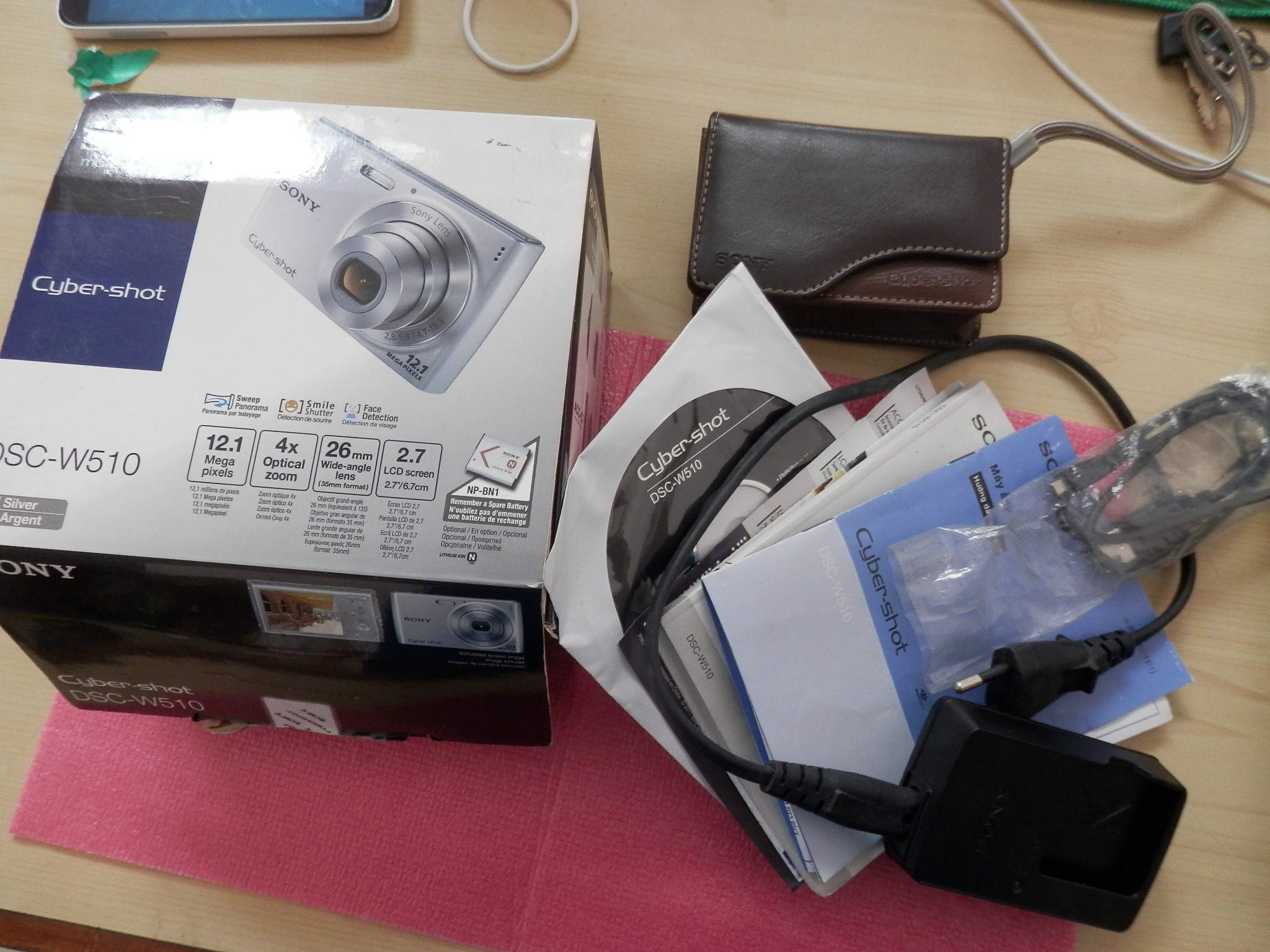 Phụ kiện: Sạc, Cáp USB, full hộp sách đĩa CD, dây đeo, bao da thời trang, tặng thẻ nhớ SD 4GB