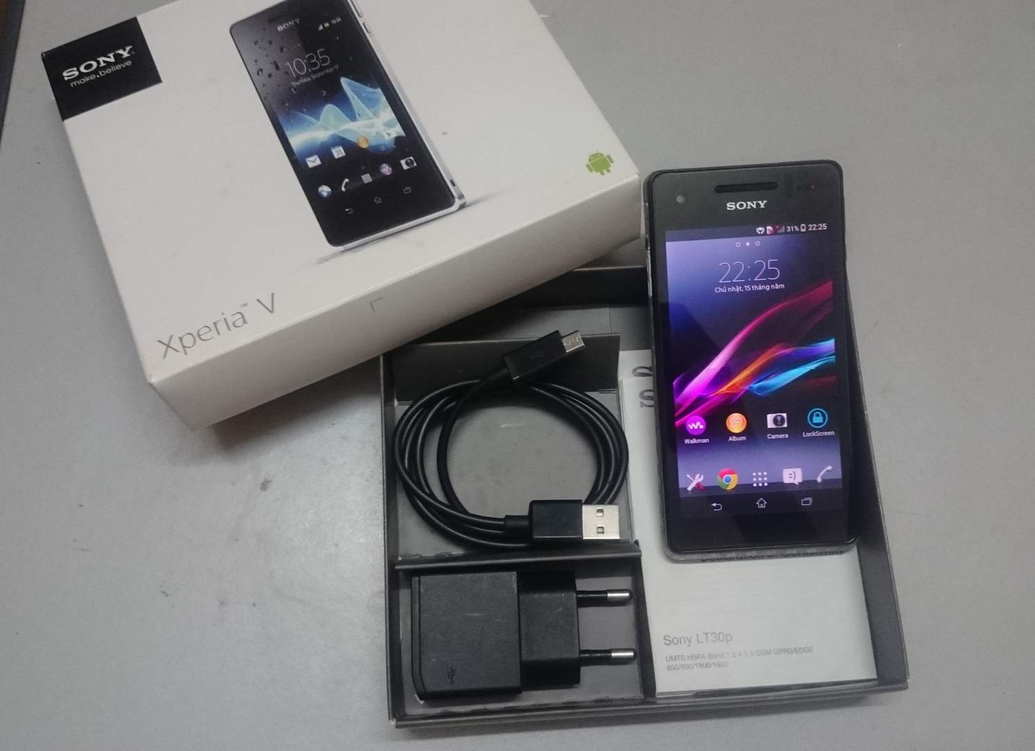Mình có em Sony xperia V mua từ đời đầu bản quốc tế chứ ko phải docomo gì đâu, chip 1,5GHz x2, Camera 13 MPx chụp ảnh nét căng, ngoại hình tương đối (đã dán viền). Phụ kiện có Box, sạc cáp, ốp nikin